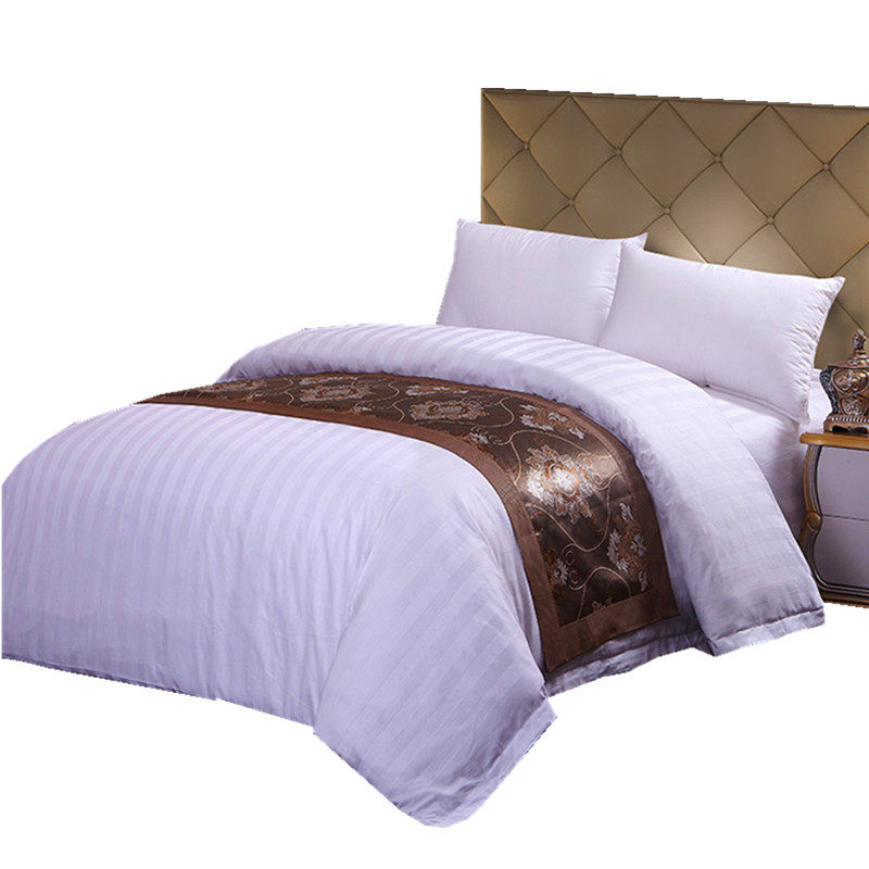 全棉酒店宾馆床上用品加密被套单件白色缎条医院会所被罩定制印字