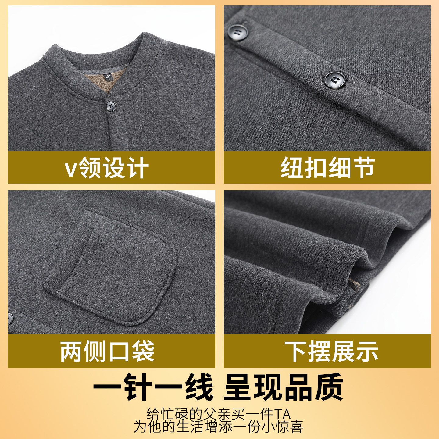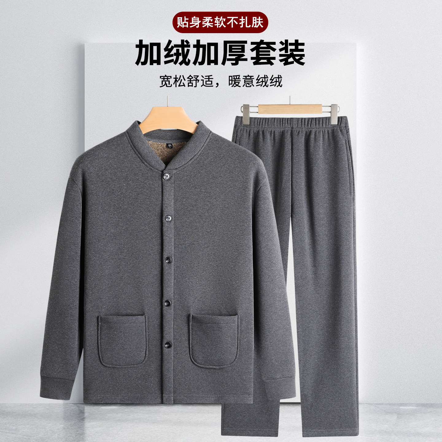 中老年人羊羔绒保暖内衣套装男冬季加绒加厚爸爸棉衣棉裤爷爷冬装