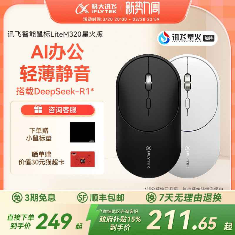 科大讯飞语音鼠标Lite-M320星火版无线蓝牙静音游戏DeepSeek-R1