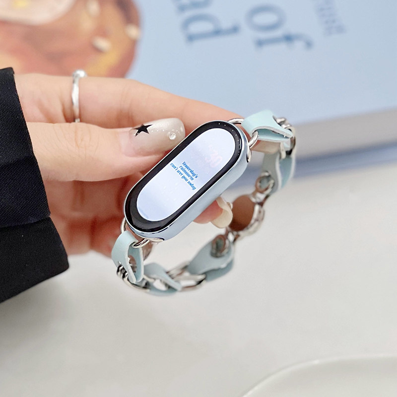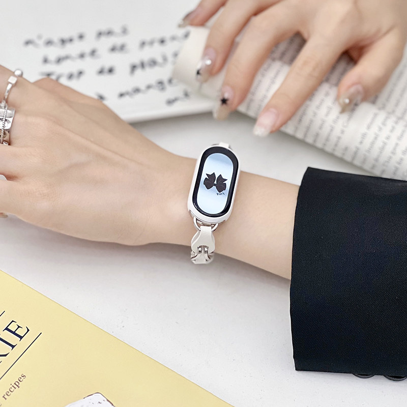 iboann适用小米手环8表带9拼接双色创意6镂空皮带金属nfc九八代运动手表磁吸替换腕带ins风小众潮男女生配件
