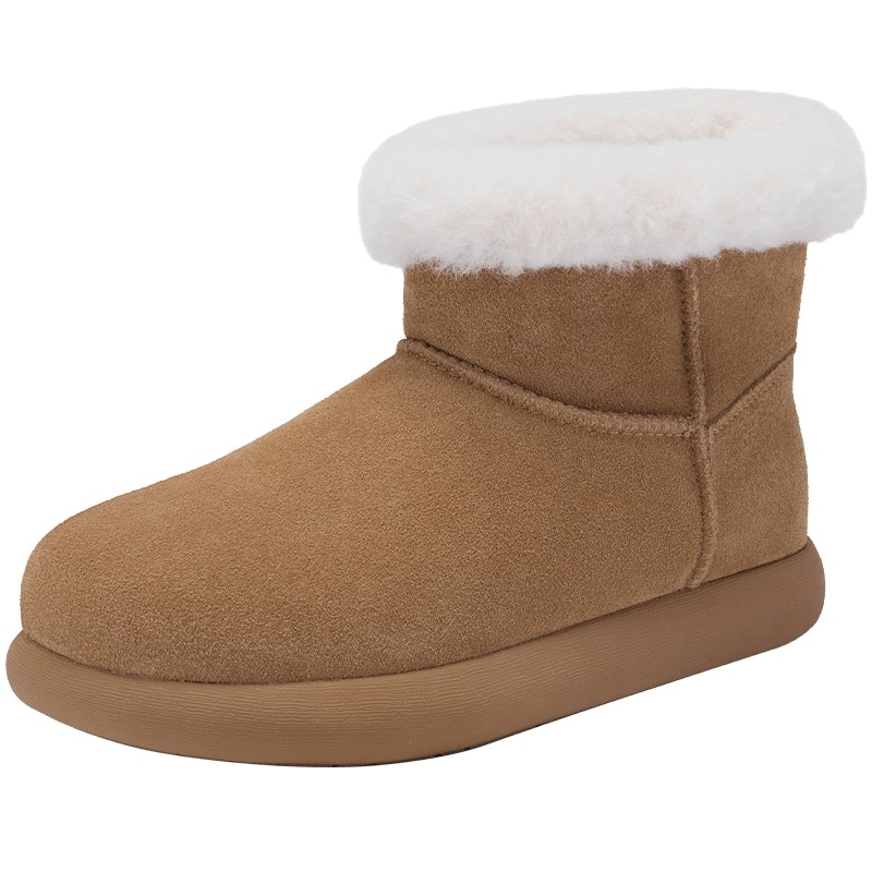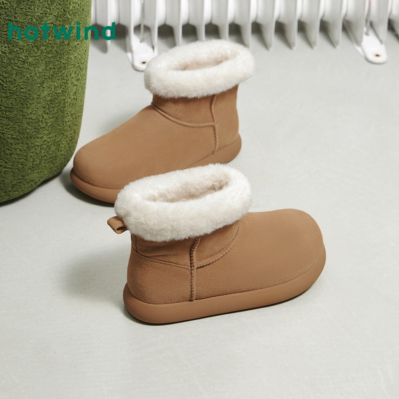热风百搭雪地靴女鞋2025年冬季新款加绒保暖棉鞋棕色休闲短靴子