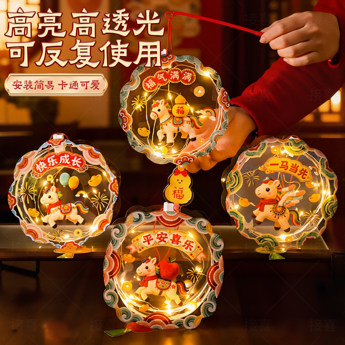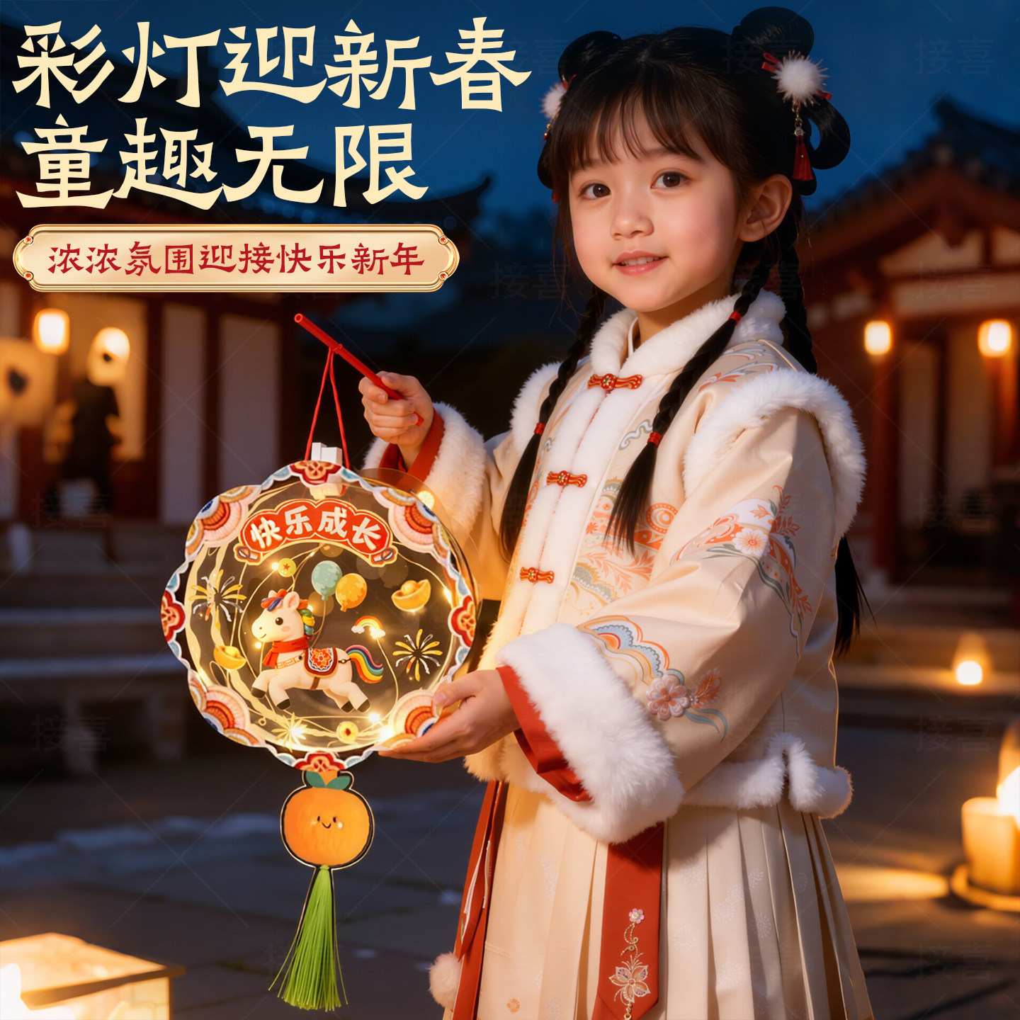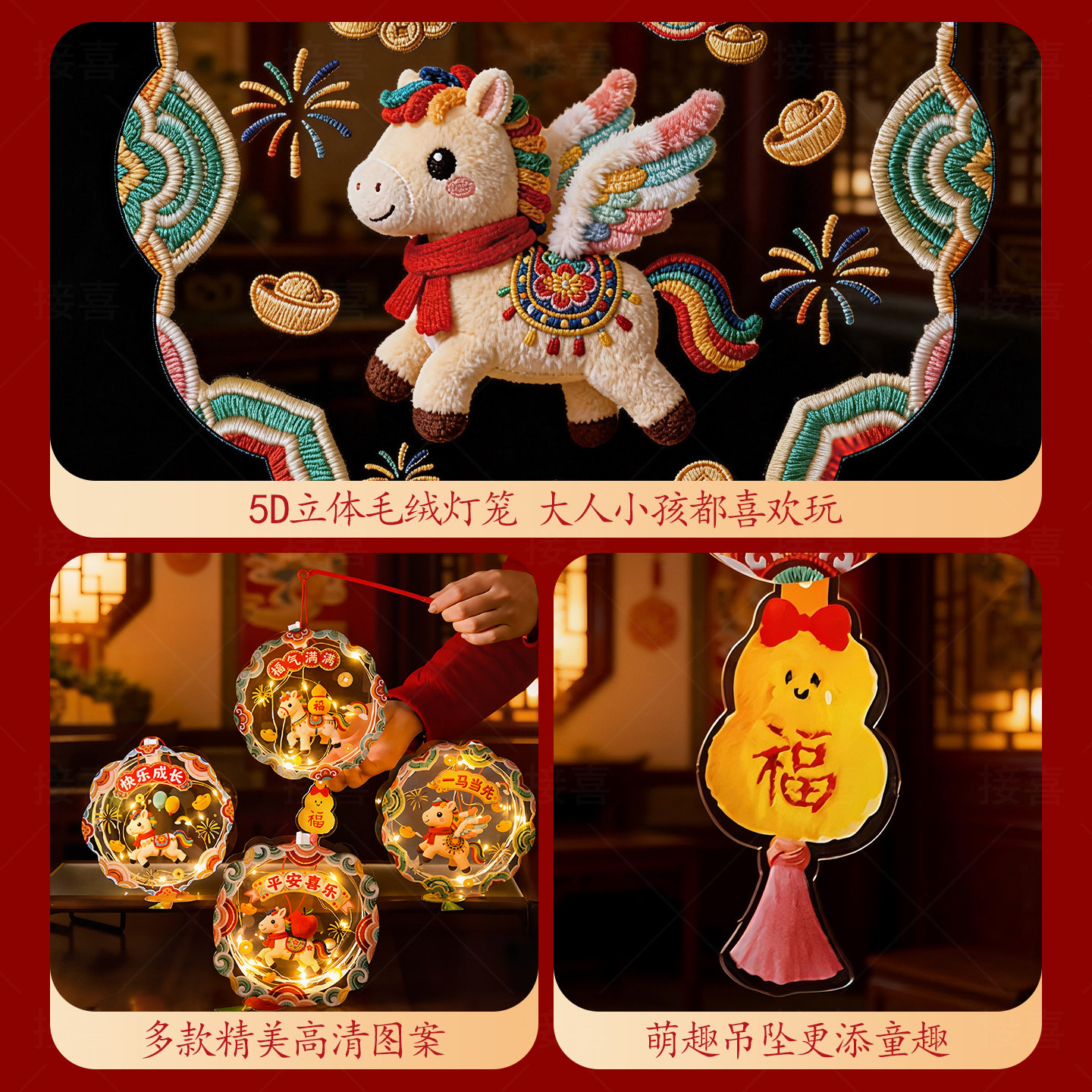 2026新年5D马年元旦发光毛绒灯笼儿童手工diy材料包8春节装饰挂饰