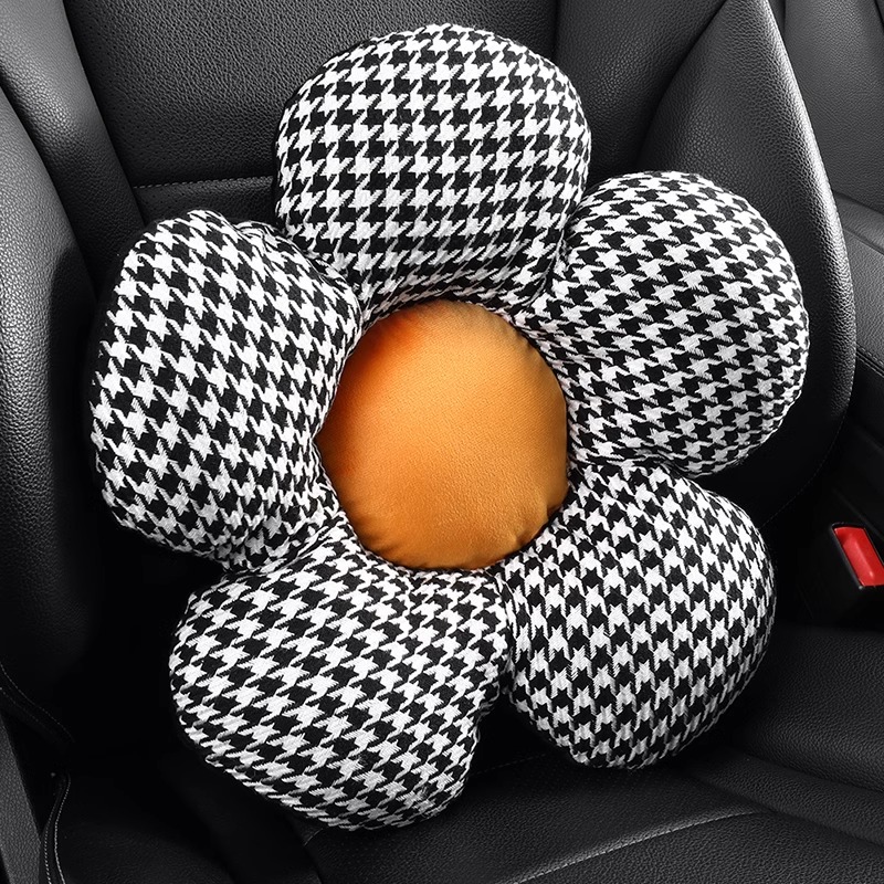 汽车腰靠座椅靠背垫车用腰托办公室靠垫车载腰枕千鸟格花朵腰垫女