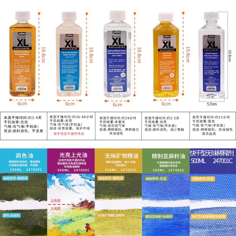 贝碧欧专业油画颜料辅料 上光油调色油亚麻籽油矿物精油500ml美术用品油画材料油画颜料助剂松节油油画媒介剂