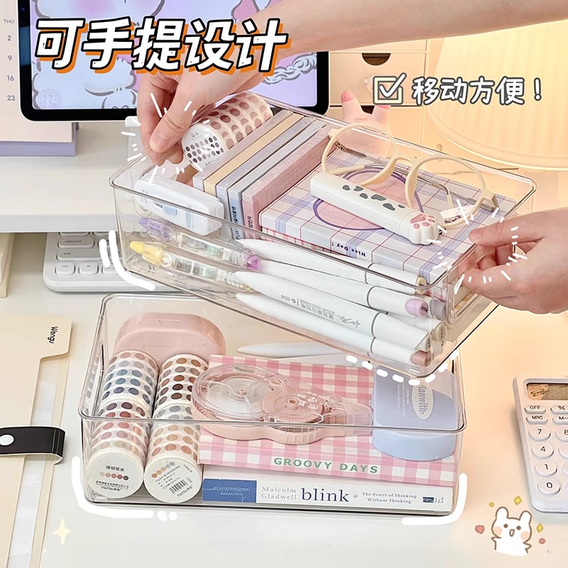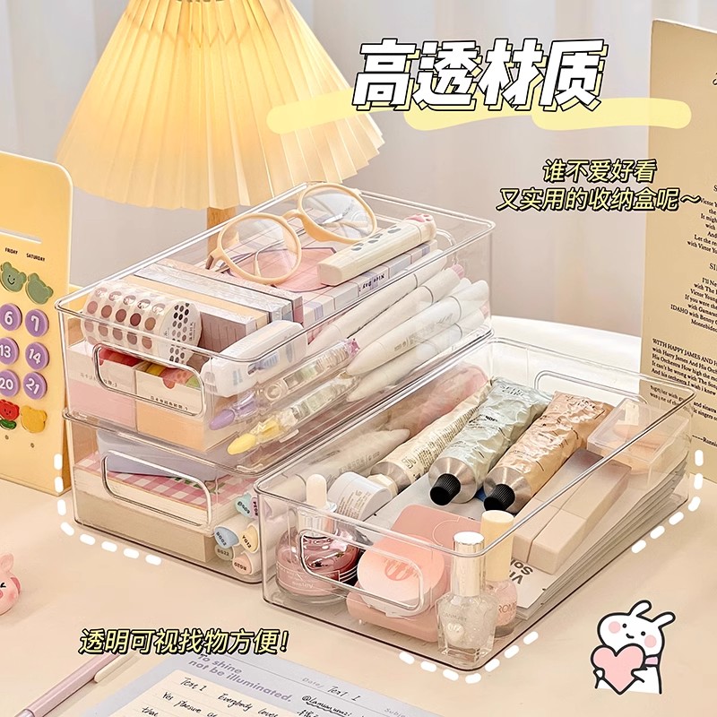 收纳盒亚克力桌面化妆品透明盒子宿舍塑料抽屉整理盒可叠加置物架