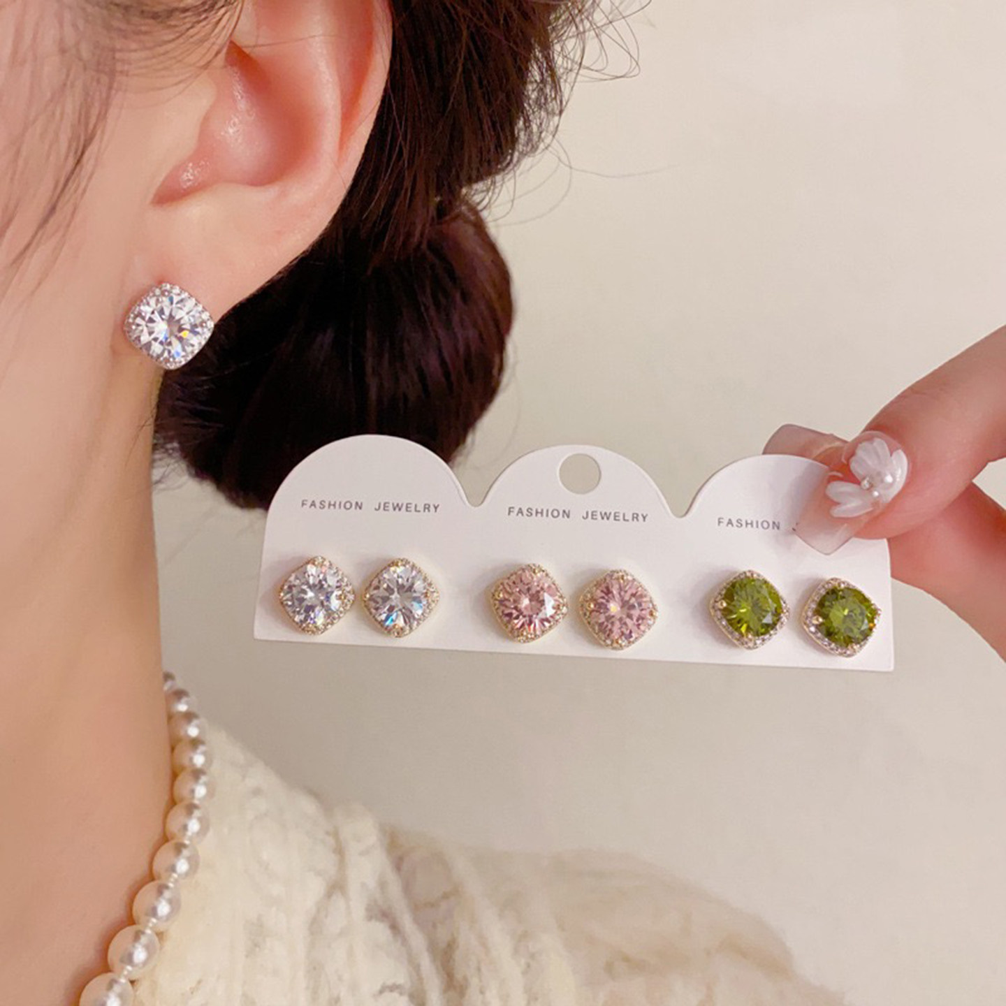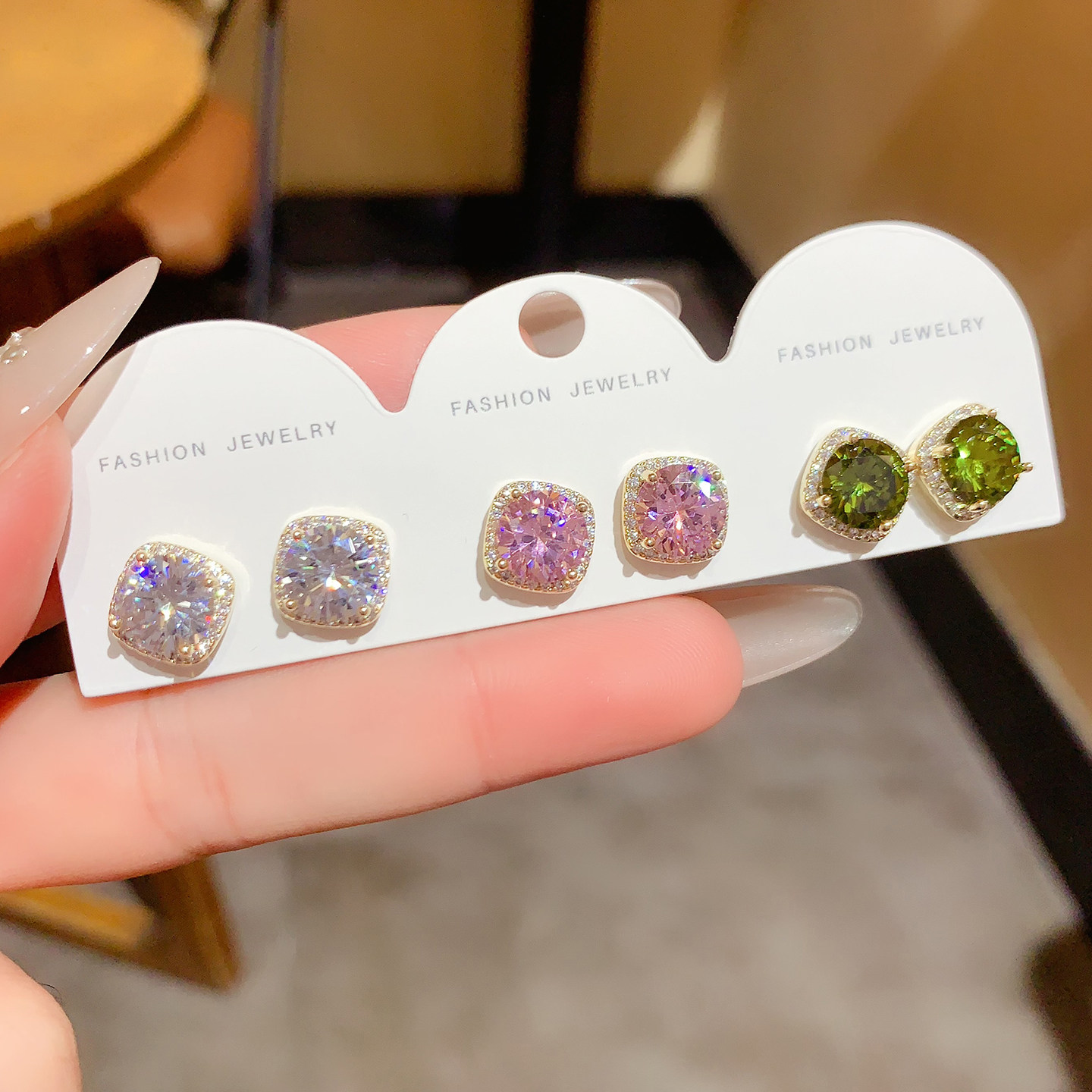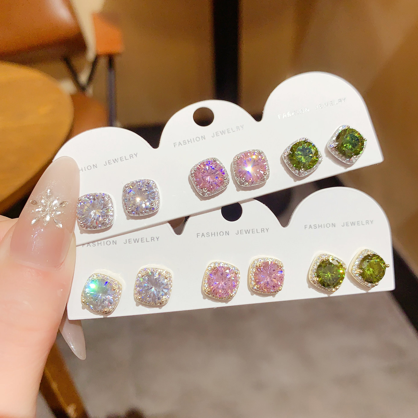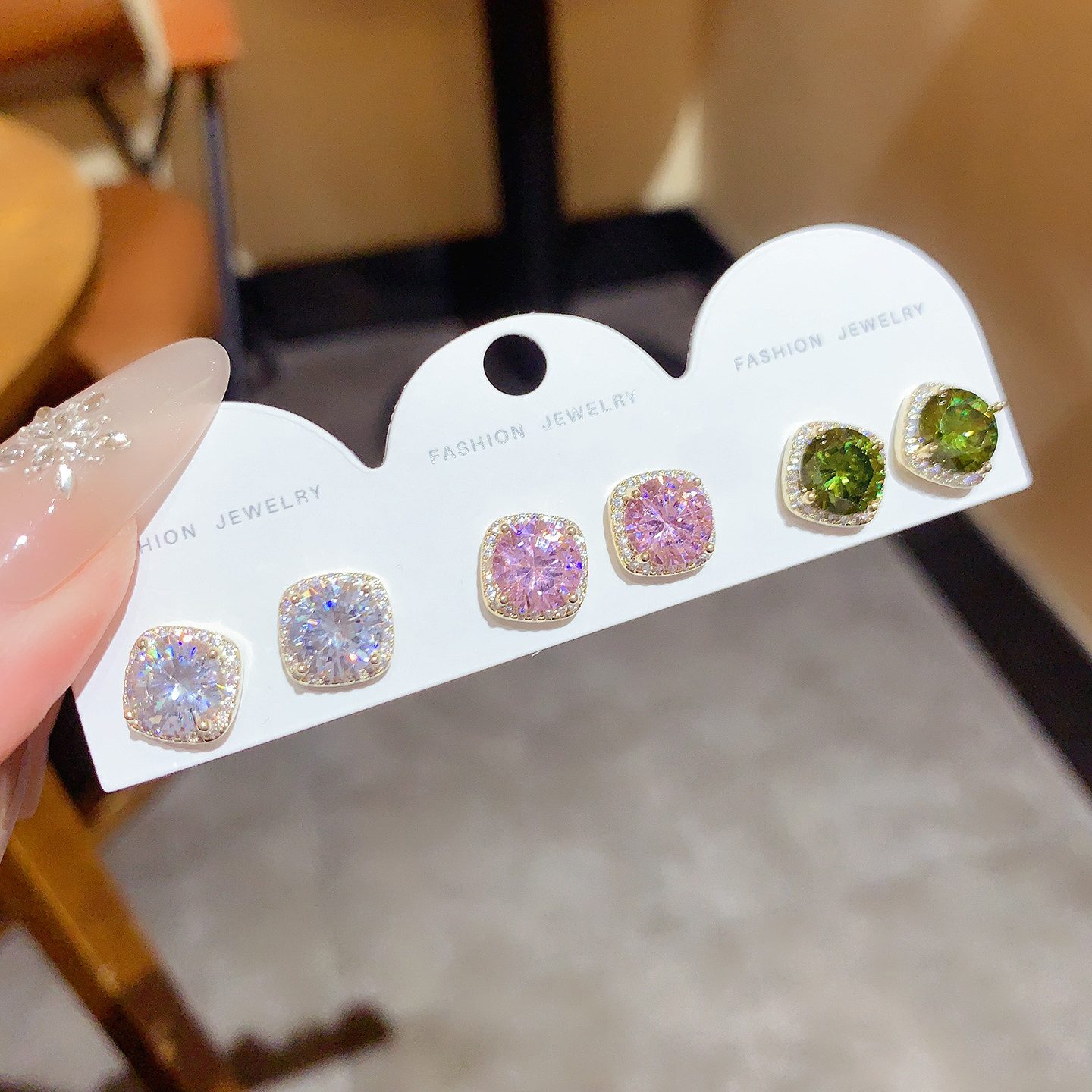 小众设计感时尚简约彩色套装组合耳钉女银针气质小巧百搭超闪耳环