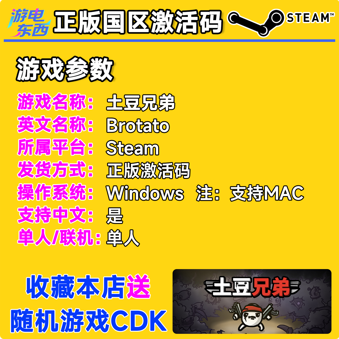 steam正版游戏 土豆兄弟 Brotato 国区激活码CDK