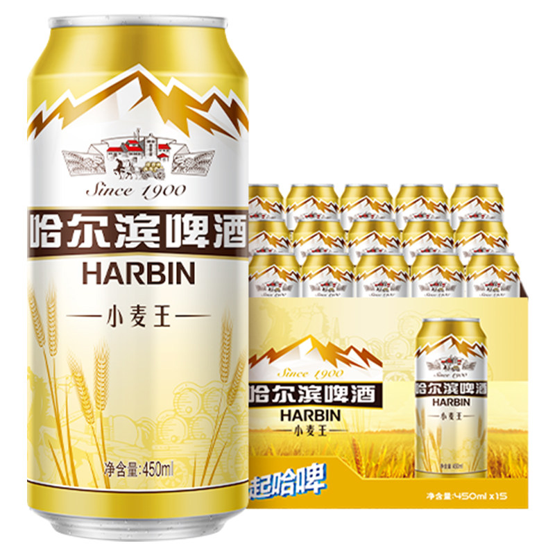 哈尔滨啤酒醇爽500ml*18听整箱超鲜瓶装哈啤小麦王啤酒罐装