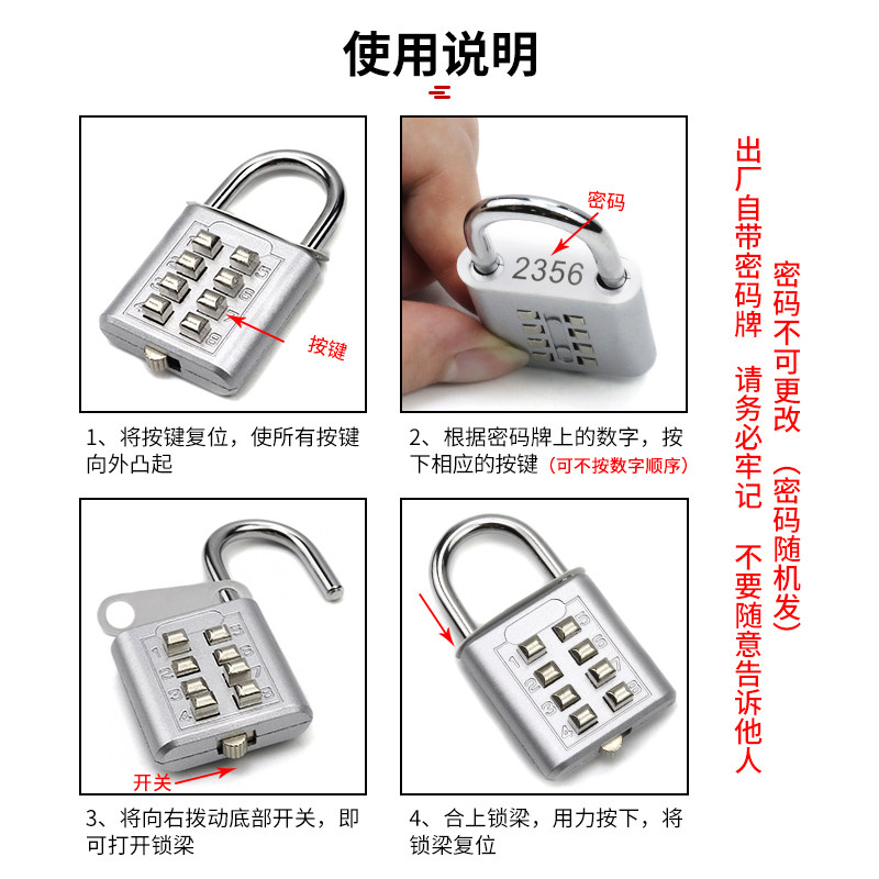 按键密码锁防水固定密码锁挂锁健身房更衣柜子锁扣防盗锁大门锁