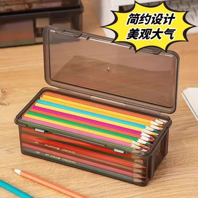 文具收纳盒大容量透明黑色铅笔盒子加厚笔筒装彩铅蜡笔素描笔袋