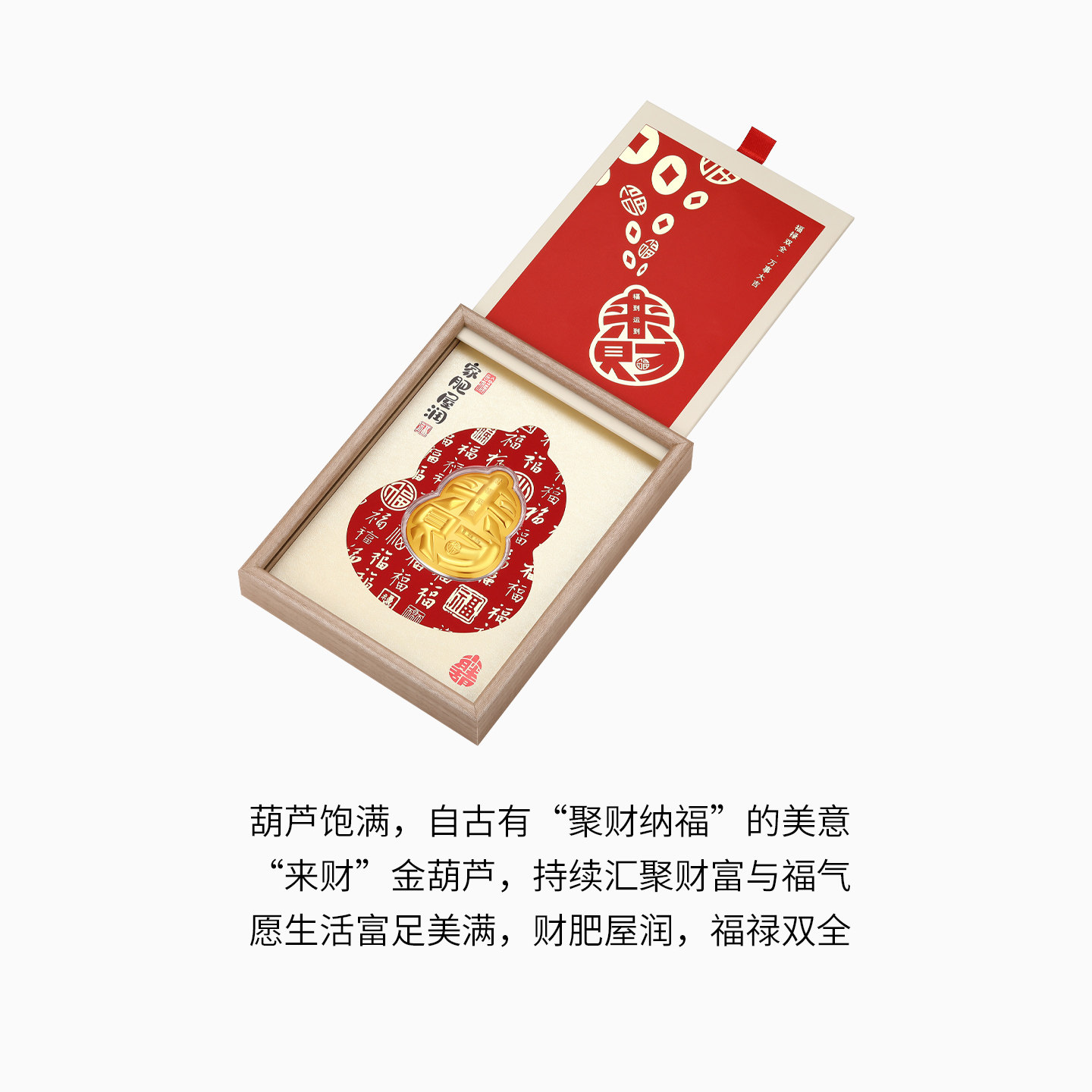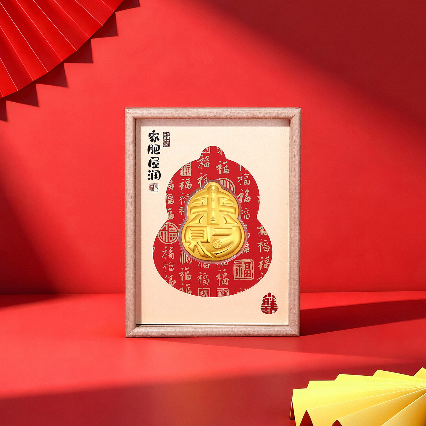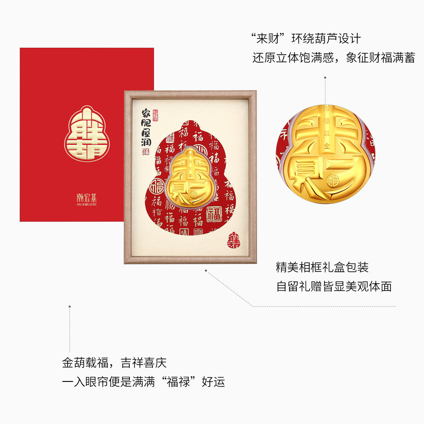 潮宏基福佑小胖葫黄金金币足金摆件入户相框收藏乔迁之喜新年礼物