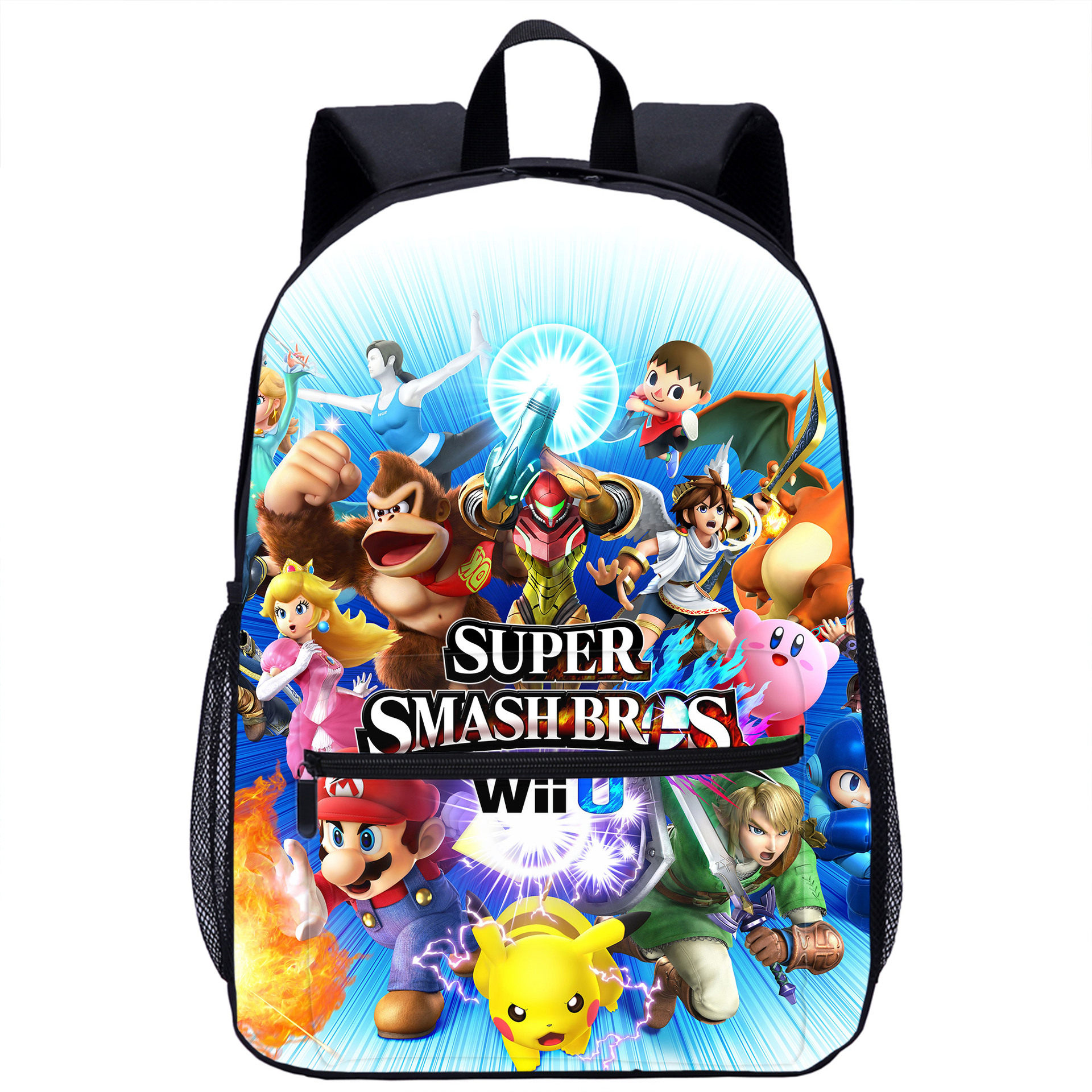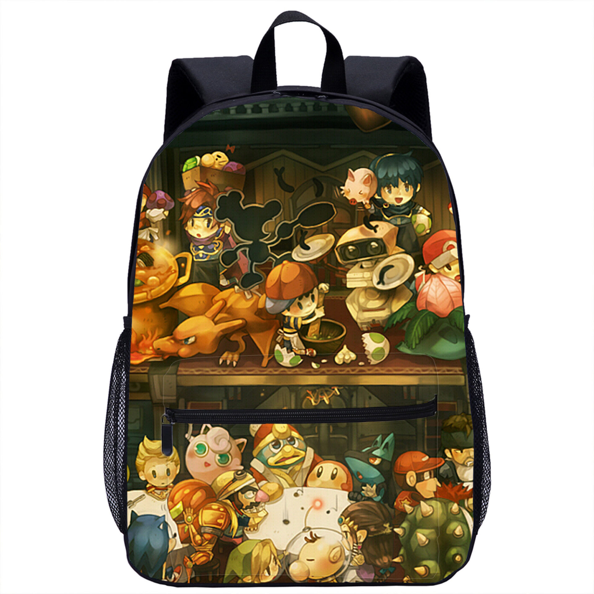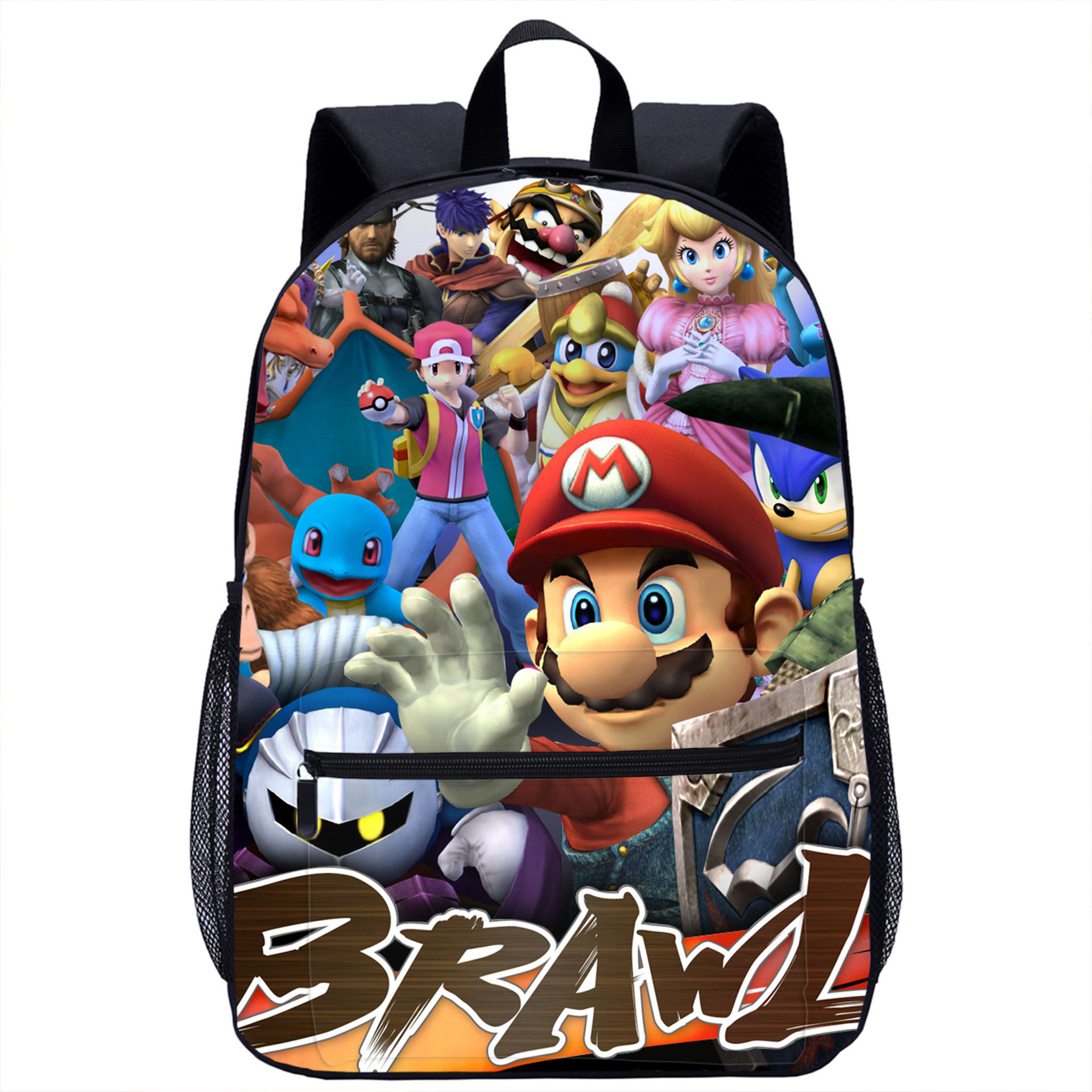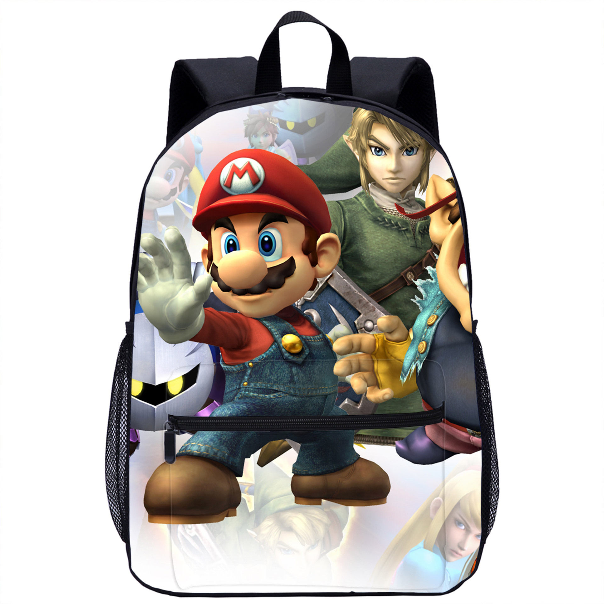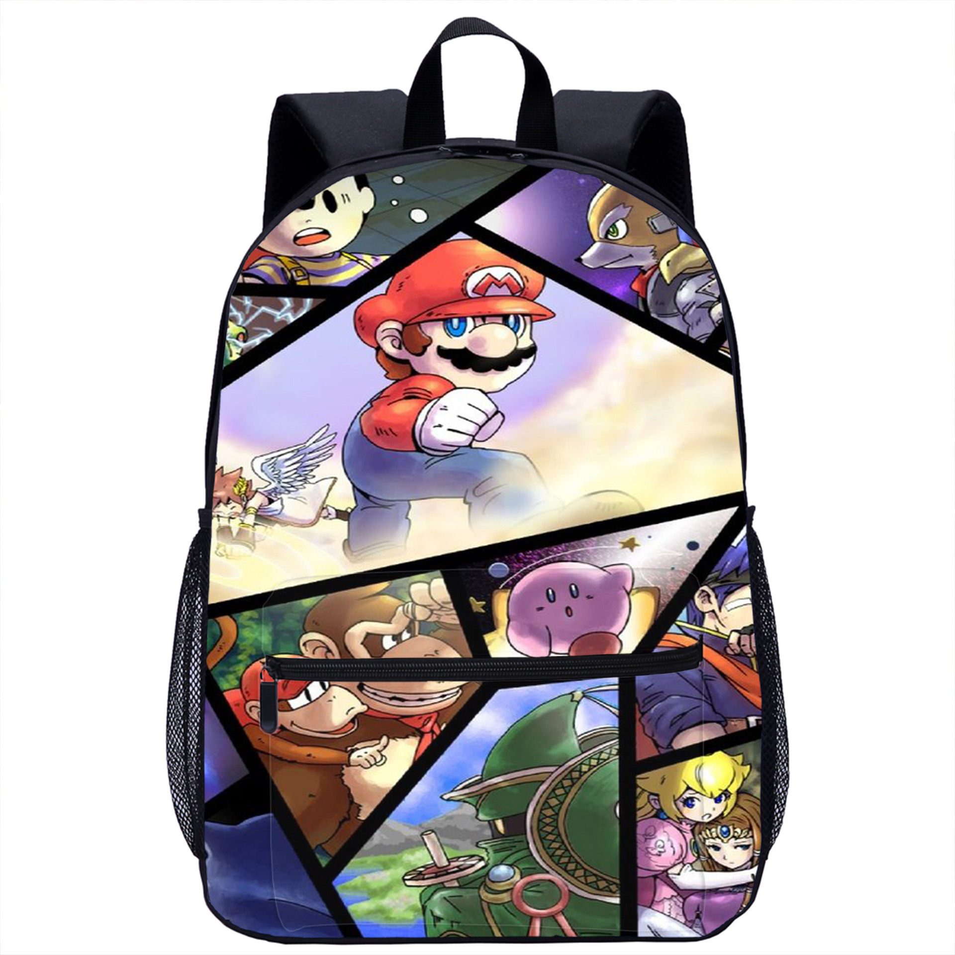 卡通马里奥Super Mario背包 来图定作LOGO印花 17寸黑色学生书包