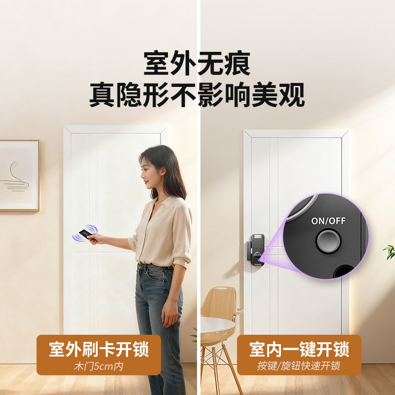 免打孔隐形门锁全自动木门智能锁APP感应开锁室内隐形暗门推拉门