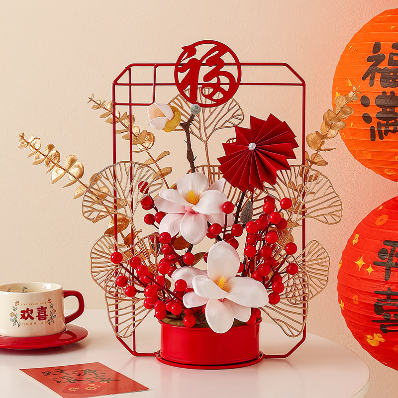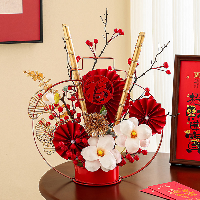 2026新年装饰品氛围布置摆件乔迁之喜年宵花束新居过年花篮发财果