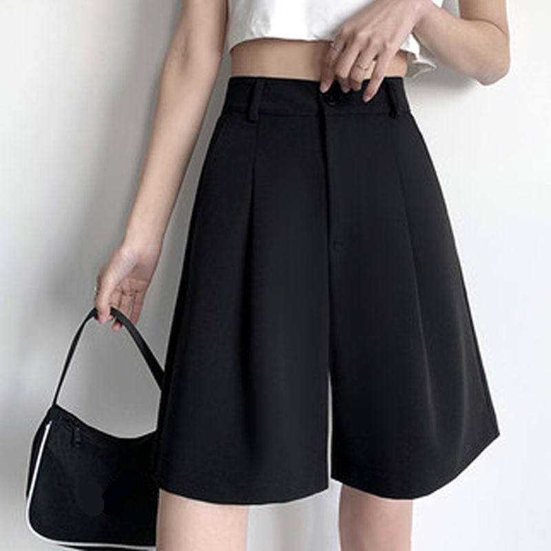 西装短裤女夏季新款韩版高腰冰丝阔腿五分裤宽松休闲A字裤中裤潮
