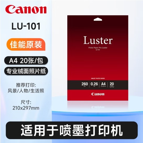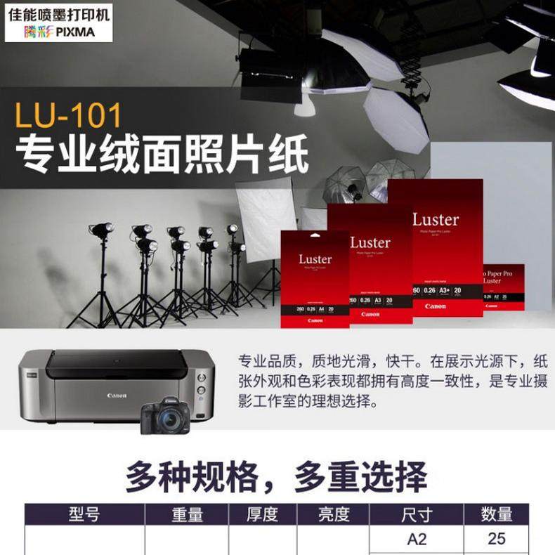 佳能(Canon)LU-101原装相纸专业绒面照片纸相片纸 LU-101 A4/A3/A2/A3+喷墨打印机照片纸PRO-100/200/500