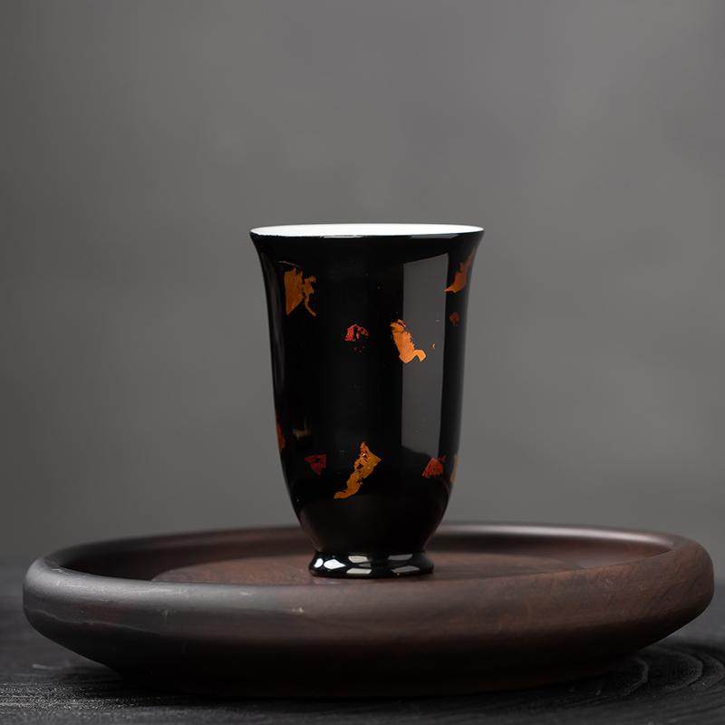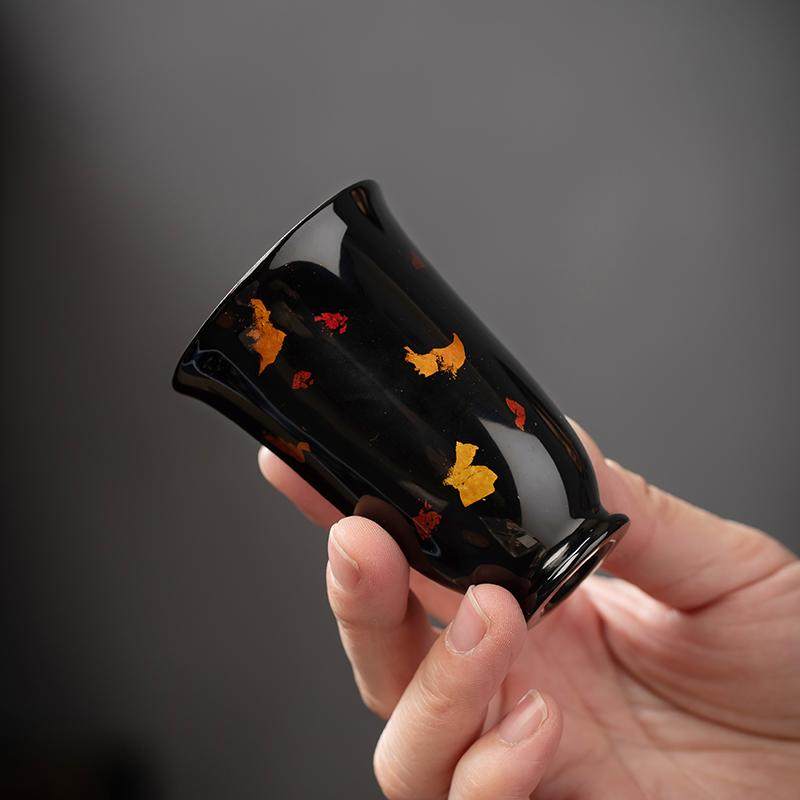 大漆金箔茶杯个人专用主人杯高端茶具礼品福州非遗特色手工艺漆器