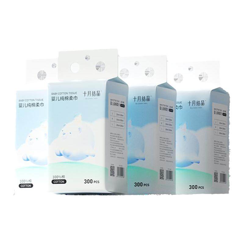 十月结晶婴儿悬挂棉柔巾纯棉洗脸巾儿童宝宝干湿两用巾大包300抽