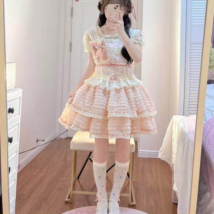 樱慧落樱风铃层层蛋糕公主裙lolita粉色甜美小个子洛丽塔连衣裙