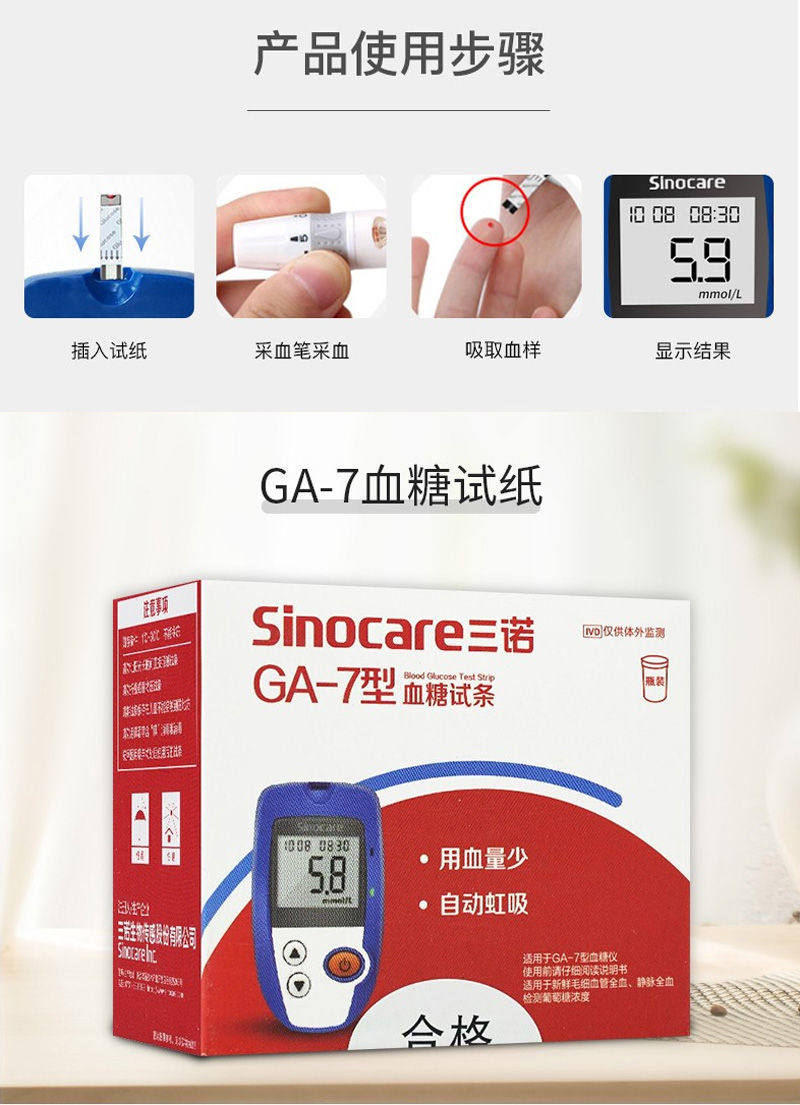 三诺GA-7正品血糖试条50片家用测血糖免调码一测试仪试纸ga-7