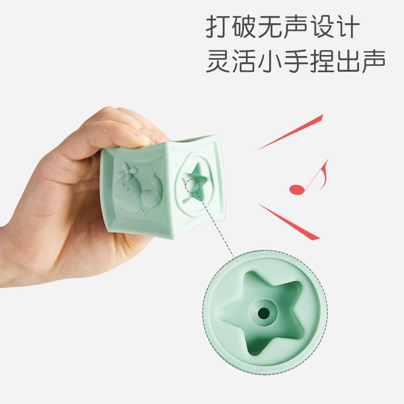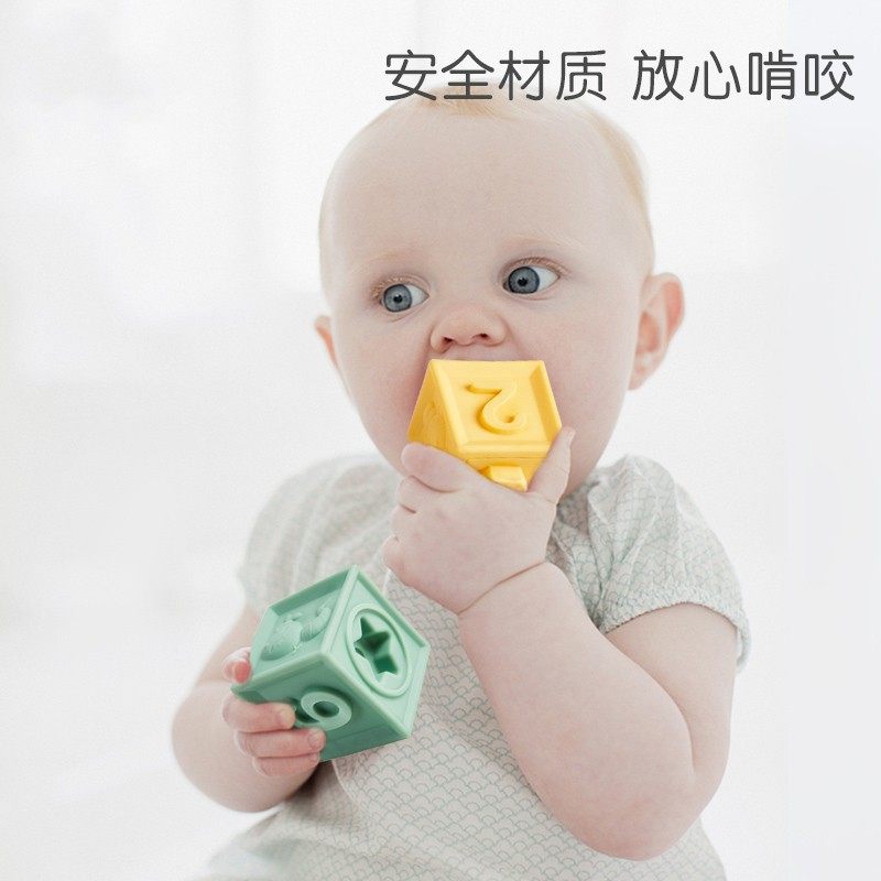 婴儿软硅胶积木可啃咬儿童益智早教玩具宝宝6个月1-3岁浮雕牙胶叠