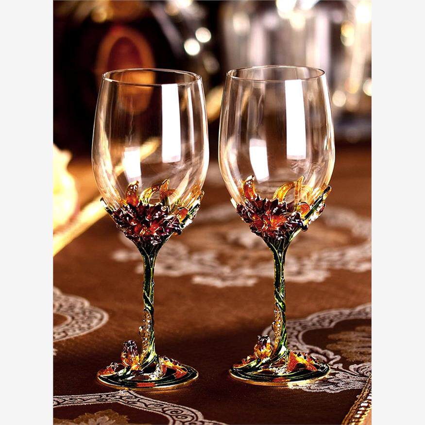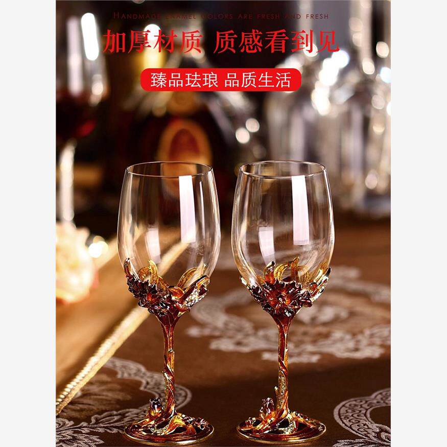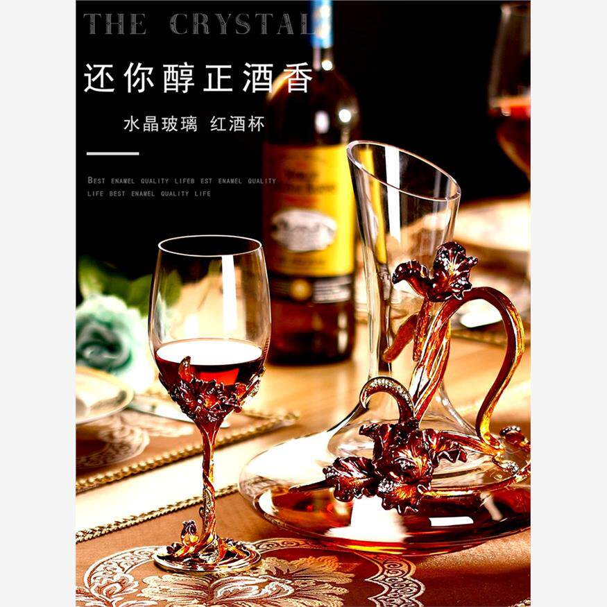 法国珐琅彩无铅水晶玻璃红酒杯醒酒器套装家用玻璃高脚杯葡萄酒杯