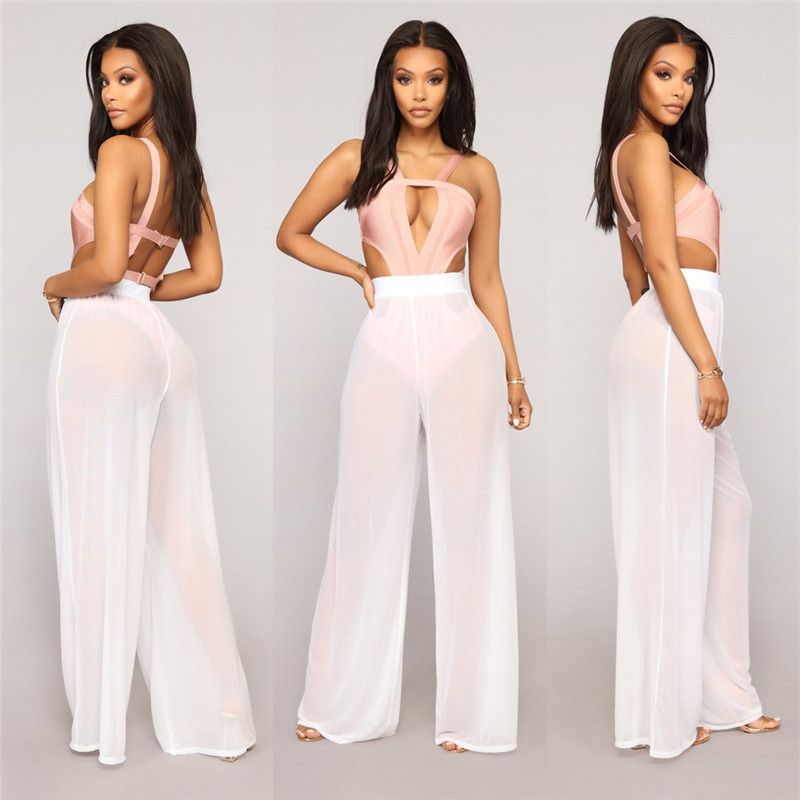 Solid Color Mesh Sheer Wide Leg Pants纯色网纱休闲透视阔腿裤