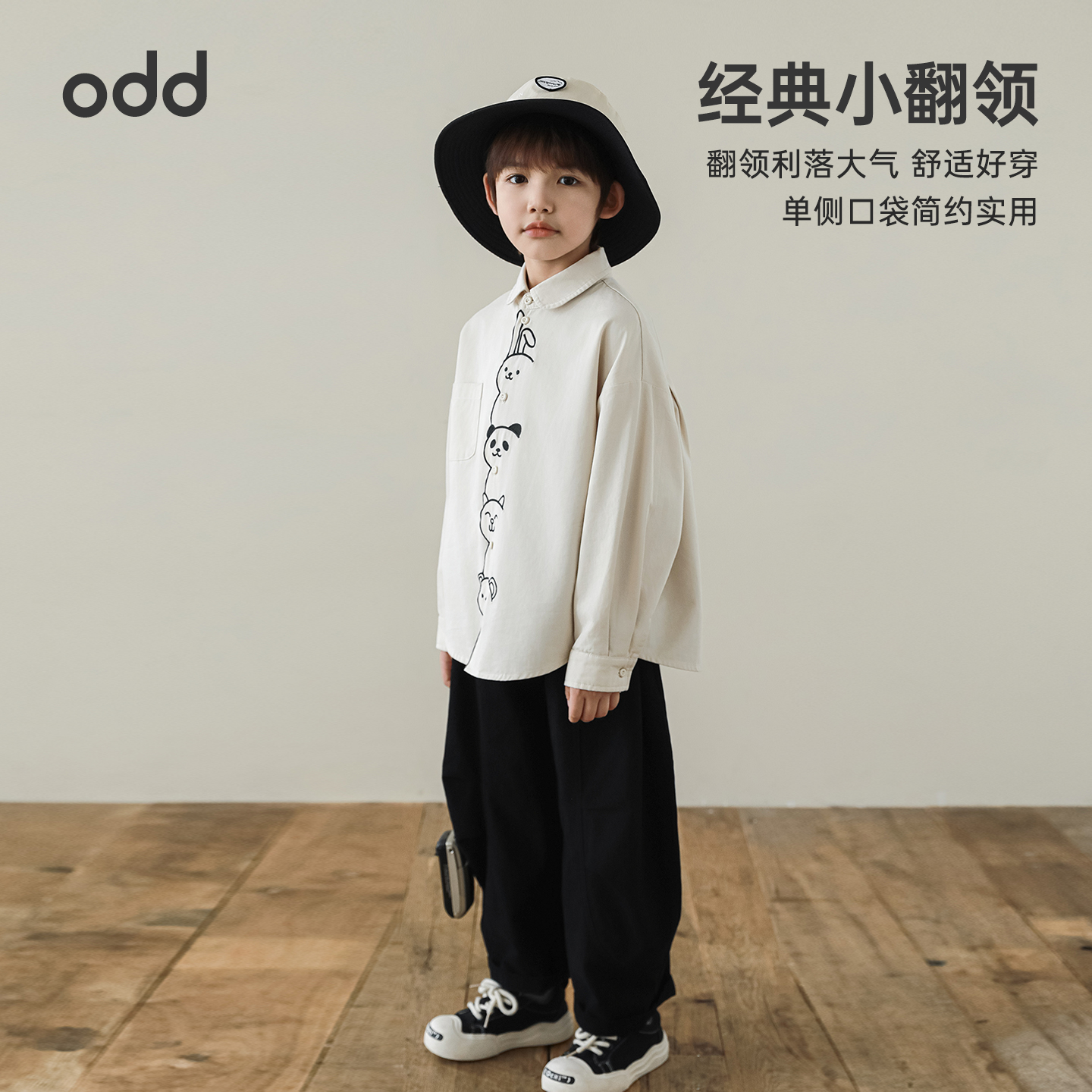 oddtails男童衬衫纯棉春秋款儿童动物园刺绣卡通衬衣2025新款上衣