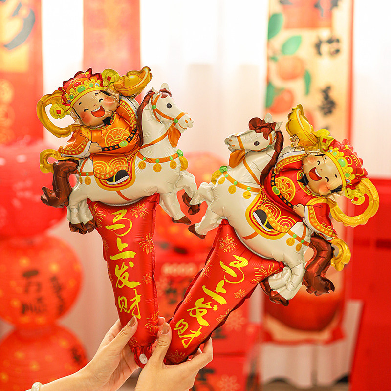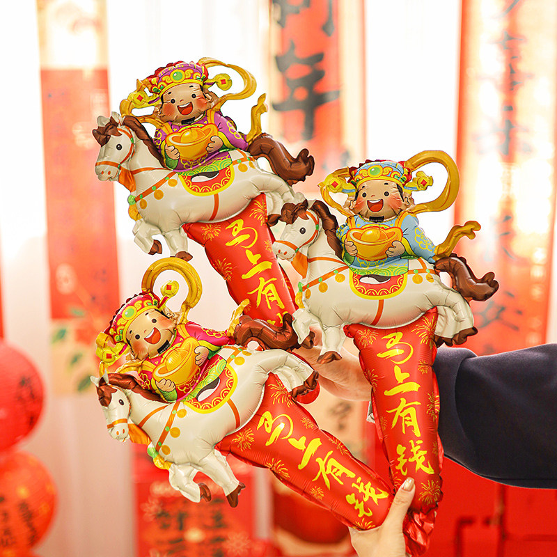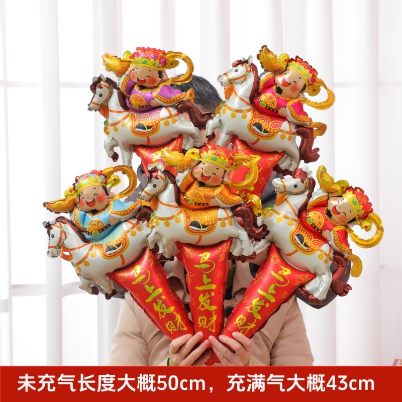马年财神爷手持气球新年春节元旦马造型装饰用品节日氛围布置礼品
