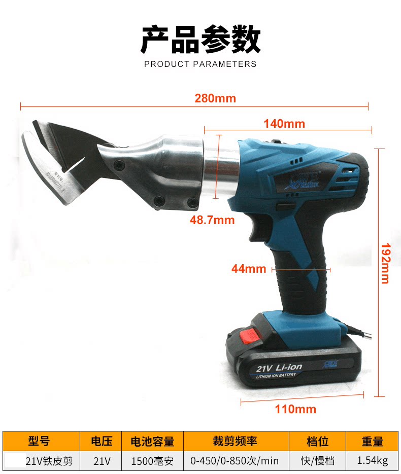 欧维尔21V电动剪刀铁皮剪电剪金属裁布羊毛金刚网电推子锂电剪刀