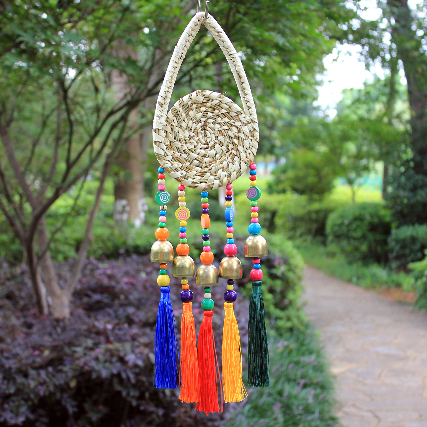 云南手工制作草编流苏风铃彝族田园特色挂饰店铺开门铃铛装饰门挂