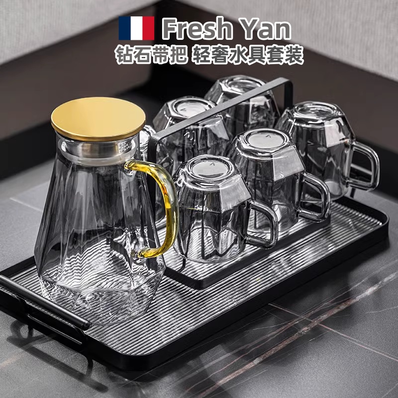 法国玻璃水杯家用客厅待客耐热喝水杯子轻奢高级感冷水壶水具套装