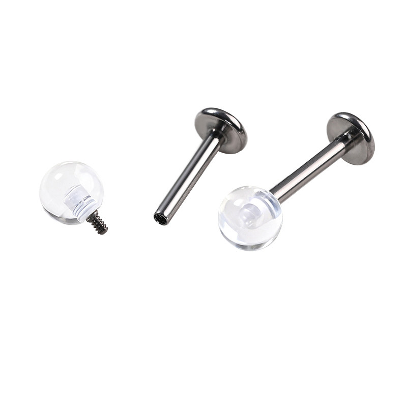 透明隐形耳钉钛合金f136学生内螺纹养耳洞耳骨耳蜗钉平底唇钉饰品