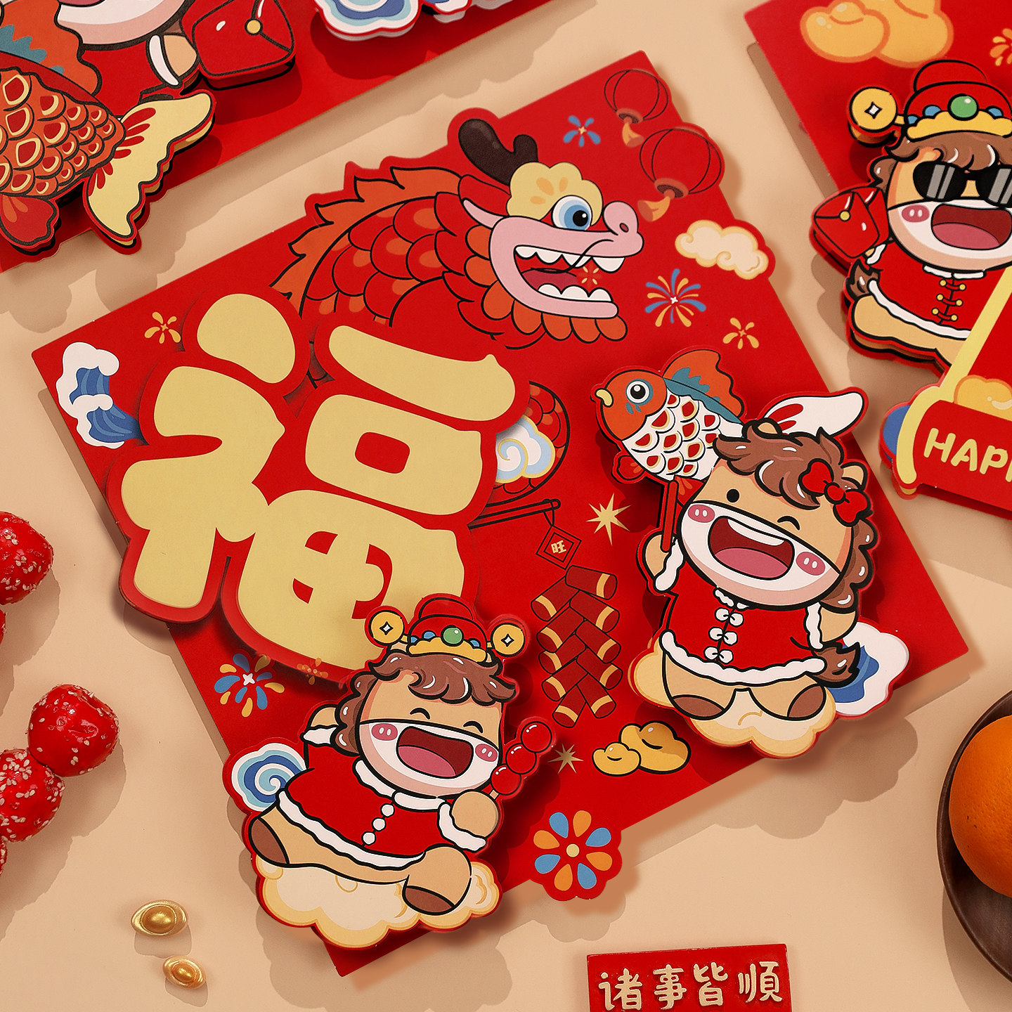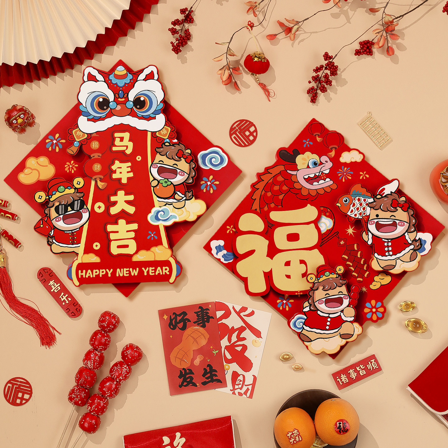 2026新款马年立体福字门贴纸新年卡通斗方装饰春节入户门过年布置