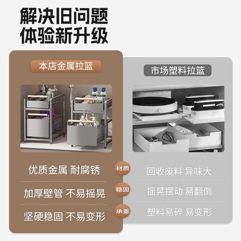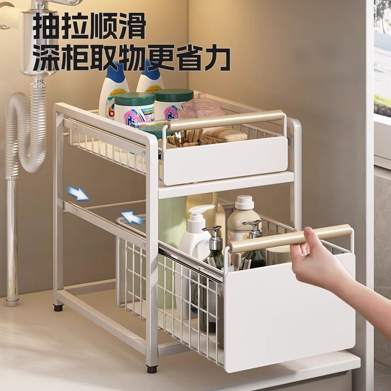 日本卫生间下水槽落地置物架浴室柜下抽拉整理收纳神器柜子分层架