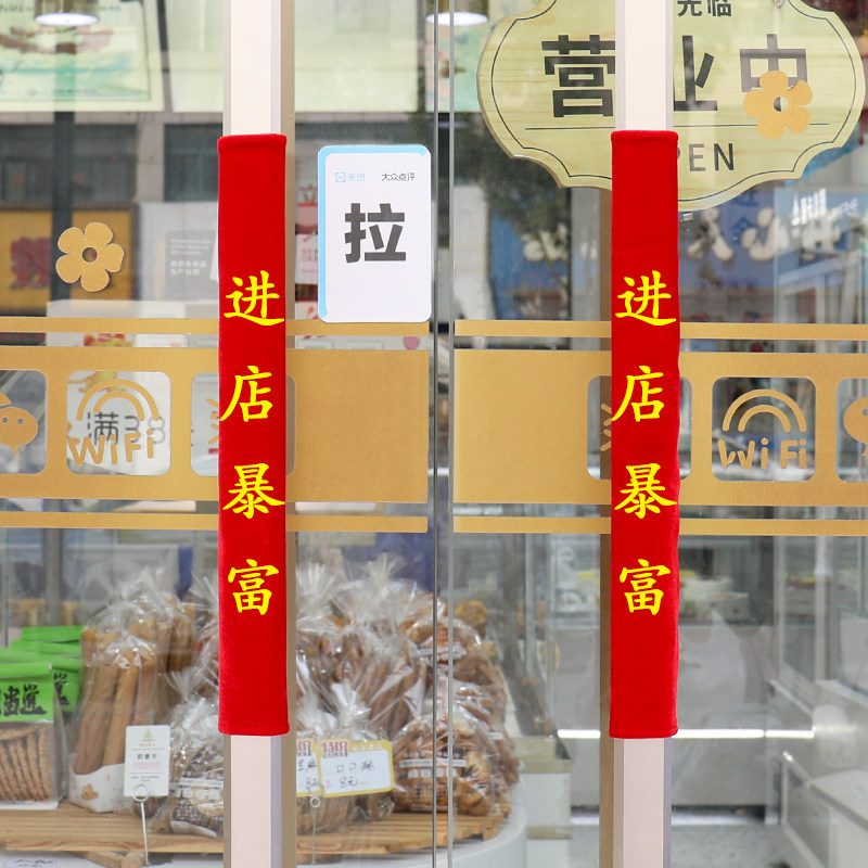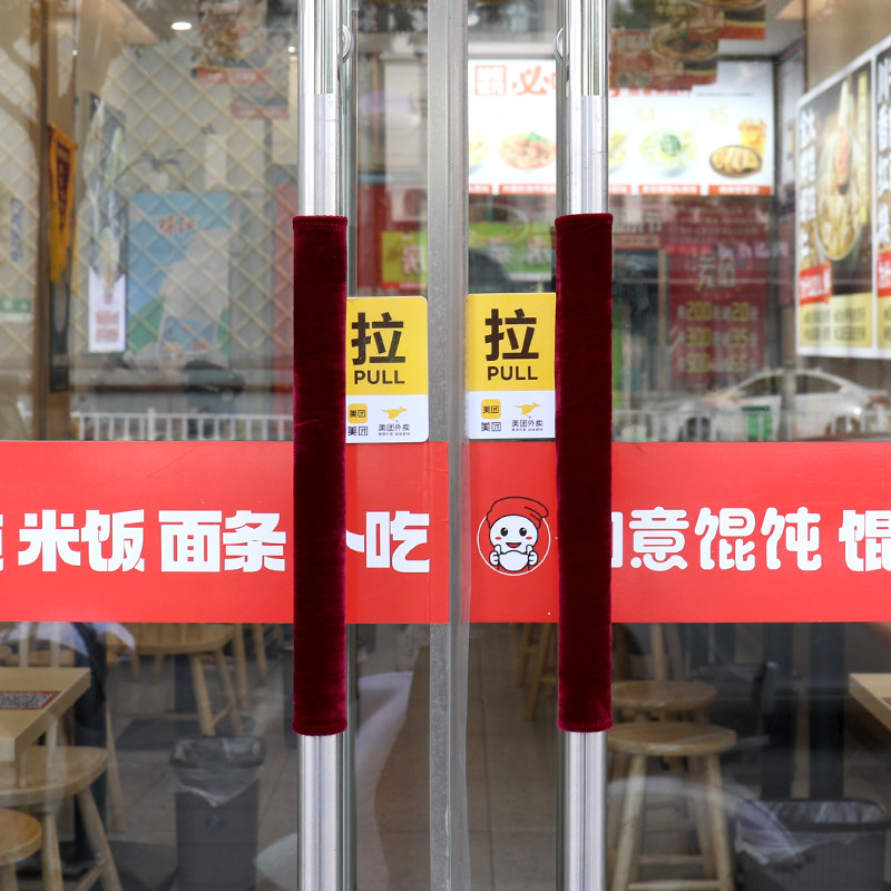 新款单元门把手套绣字款玻璃门商铺拉手门把套冬季防寒防撞绒布套