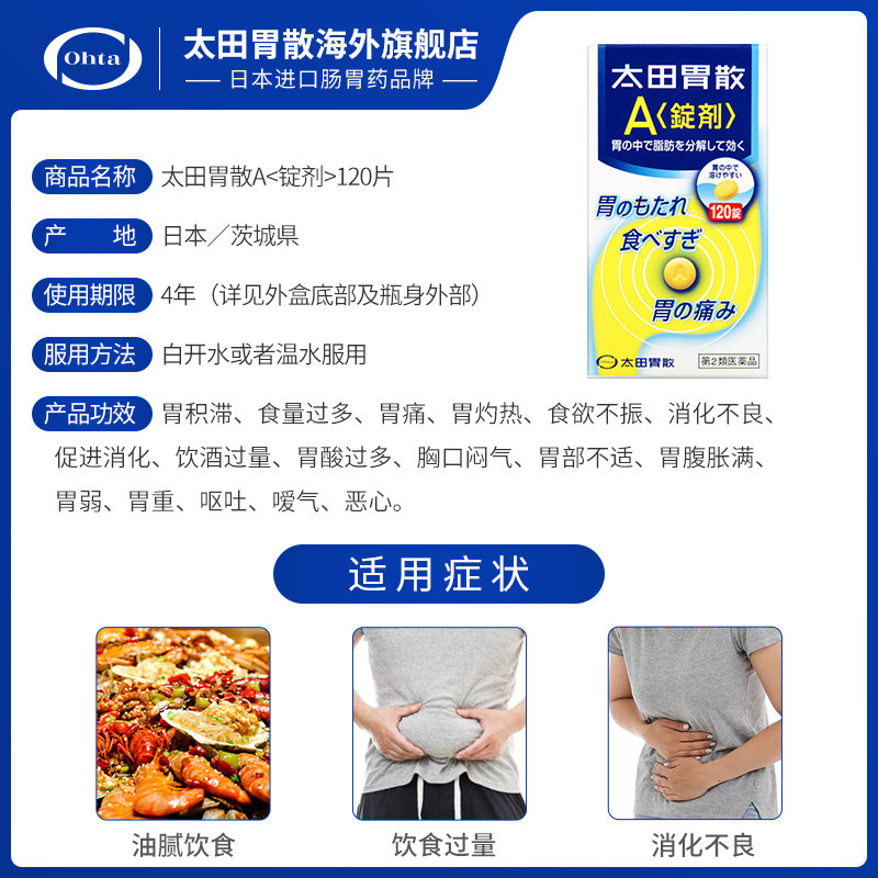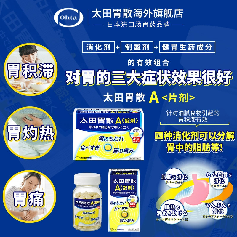 太田胃散旗舰店进口胃药宿醉饮酒过度恶心反胃太田胃片剂A锭