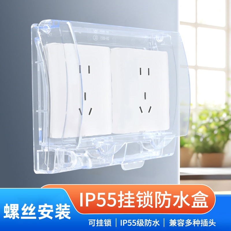 防水盒86型防水IP55双联级全封闭卫生间插座保护套全遮电源盒带锁
