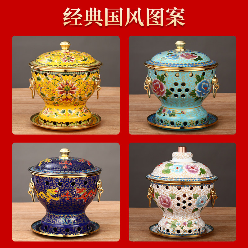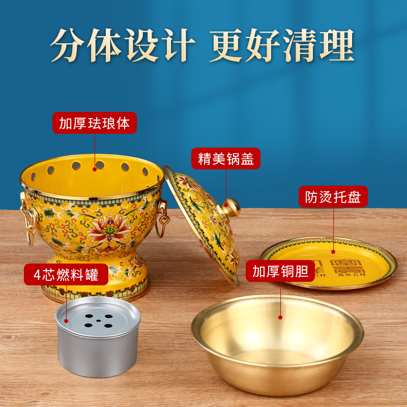 景泰蓝铜火锅铜锅火锅家用纯铜珐琅单人酒精炉子小火锅家用小型