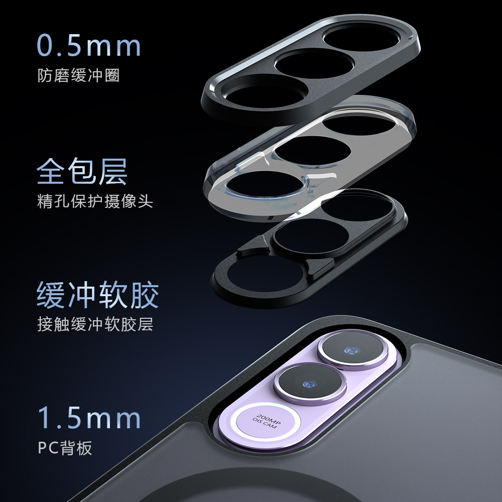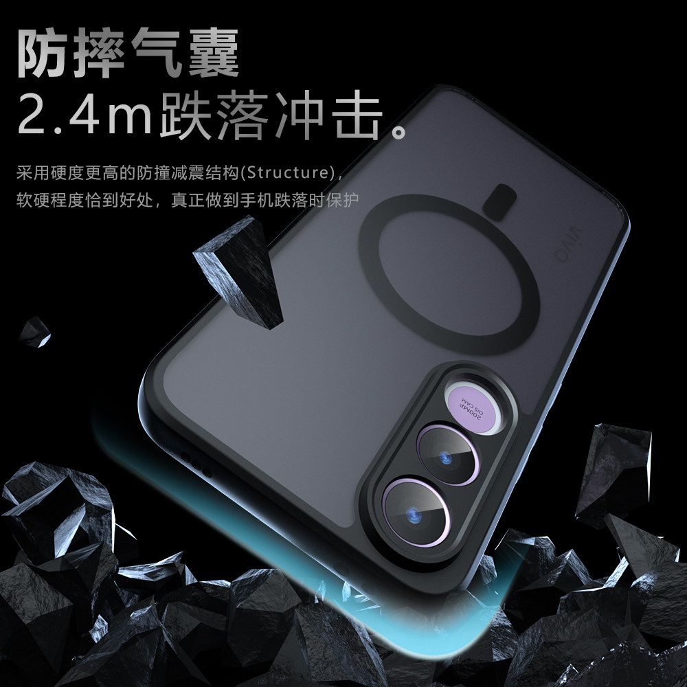 适用于vivo V70 FE透黑手机壳S50内置气囊保护套v70fe防摔磨砂透明防指纹车载磁吸充电全包硬底软边带防尘网