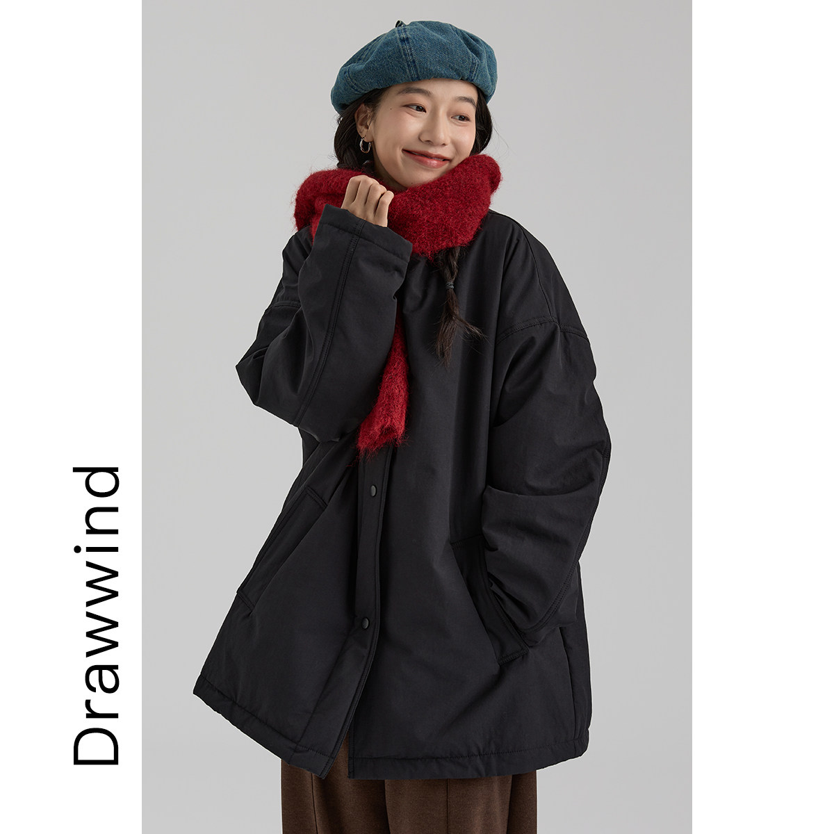 画风2025冬季新款棉服外套女立领保暖棉衣中长款防风面包服