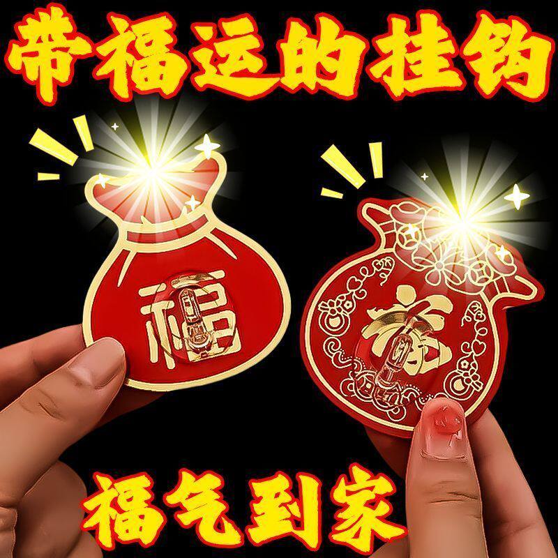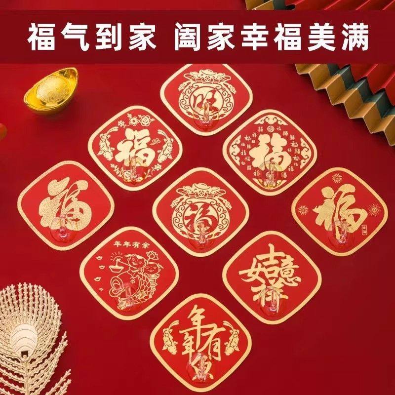 福字挂钩免打孔多功能喜庆装饰红色挂钩瓷砖墙上粘钩贴e