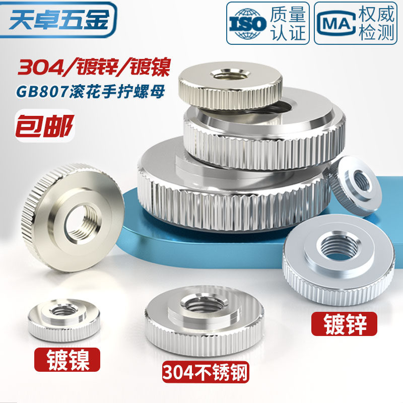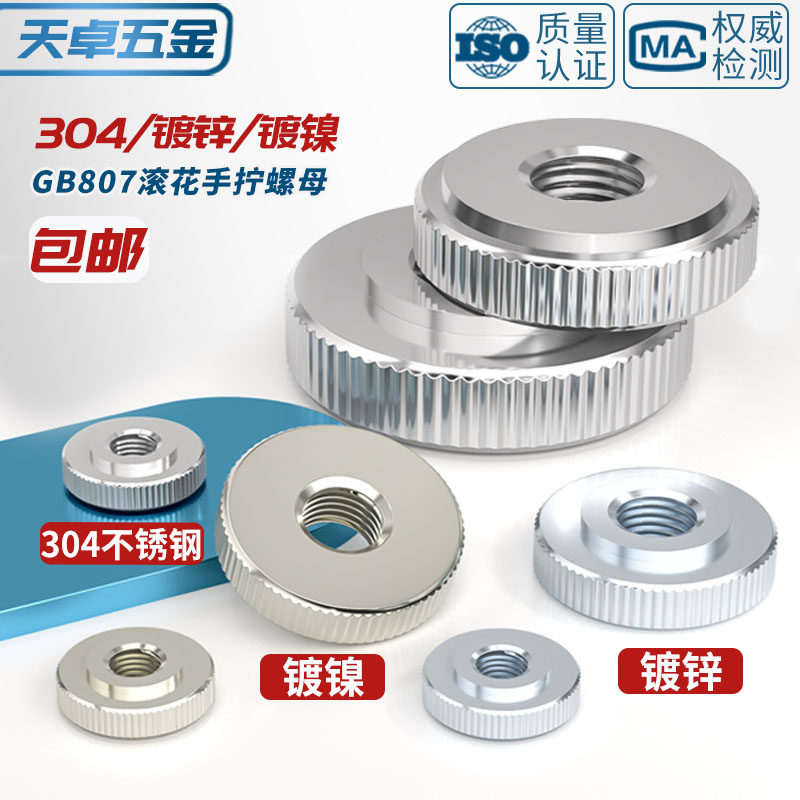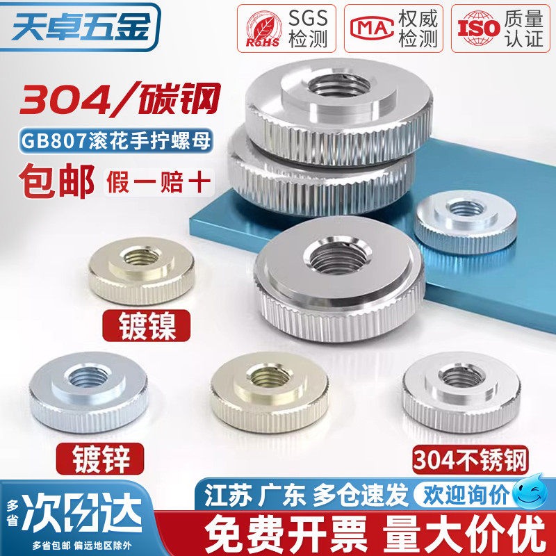 GB807 304不锈钢/铁镀锌镀镍手拧螺母滚花大头薄平头螺丝帽M3-M10