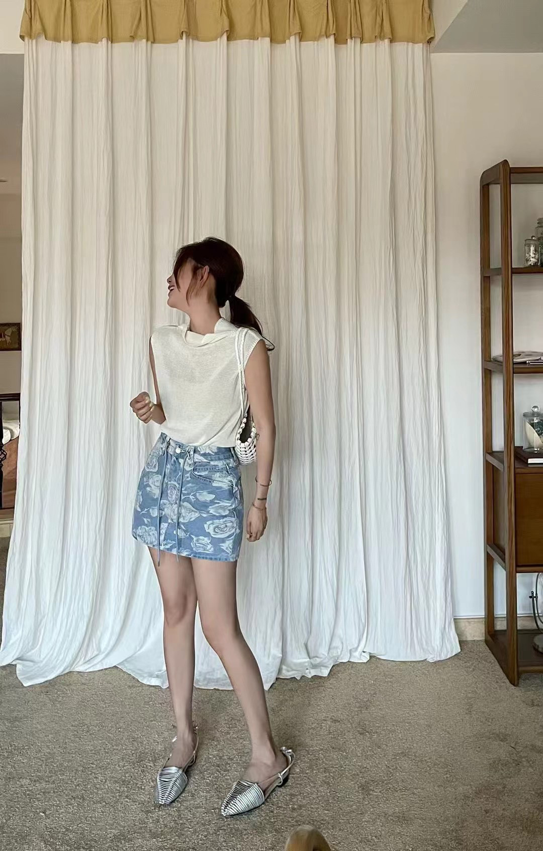 2025年夏新款韩版时尚复古提花牛仔半身裙女式设计感高腰小众短裙
