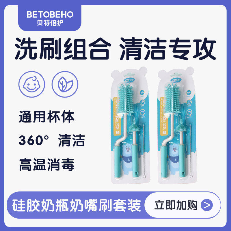 贝特倍护硅胶奶瓶奶嘴刷套装(奶瓶刷+奶嘴刷+吸管刷)