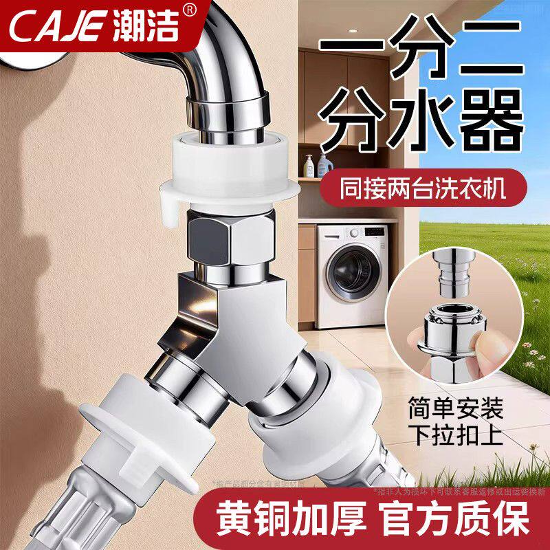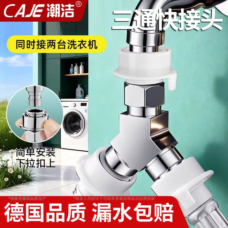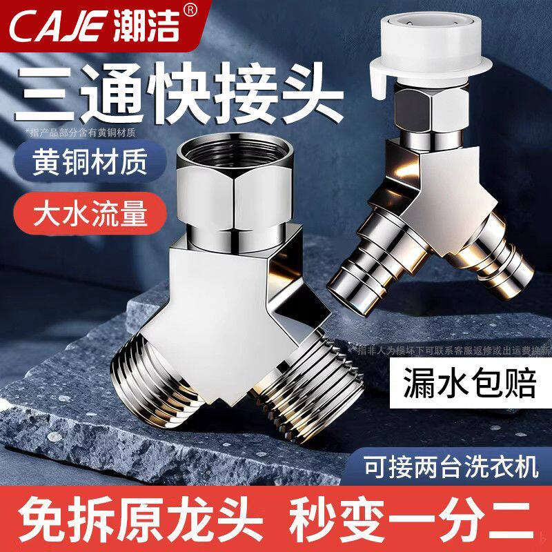 潮洁免拆水龙头通用洗衣机龙头专用黄铜一分为二分水器三通快接头