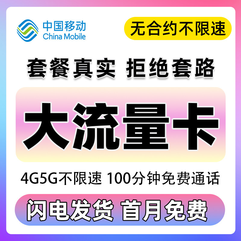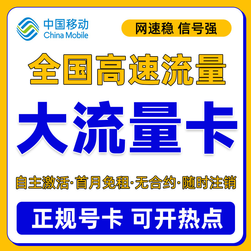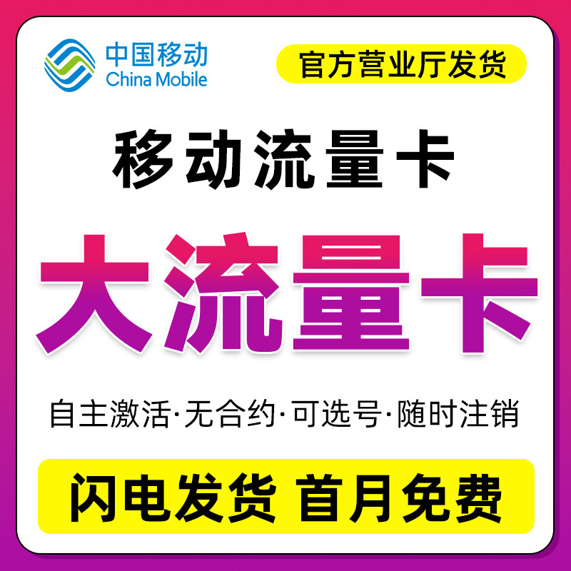 中国移动流量卡纯流量上网卡无线限全国通用大流量卡手机卡电话卡