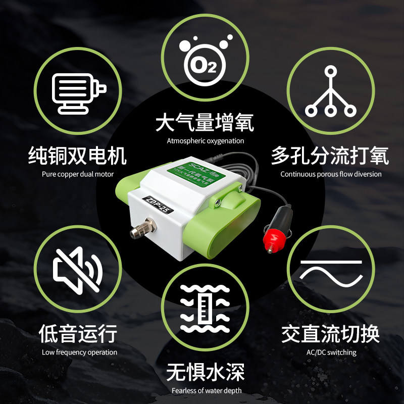 220V庄舟12V静音氧气泵车载夹电瓶插电大气量运输卖鱼直流增氧泵