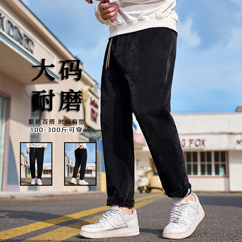 K3050大码下装胖子冬季束脚加绒裤加厚宽松男式卫裤