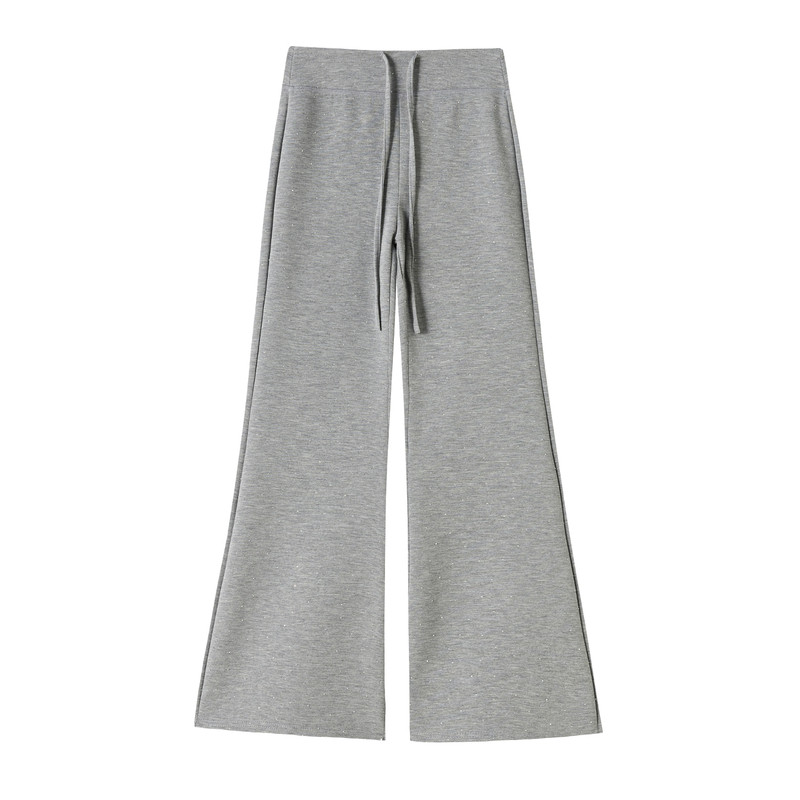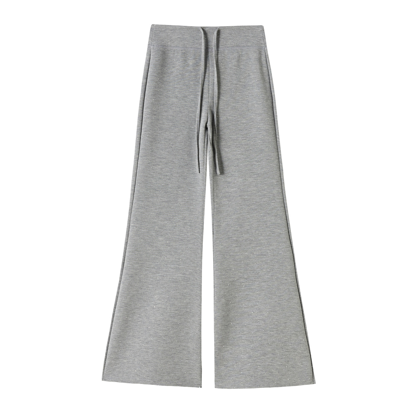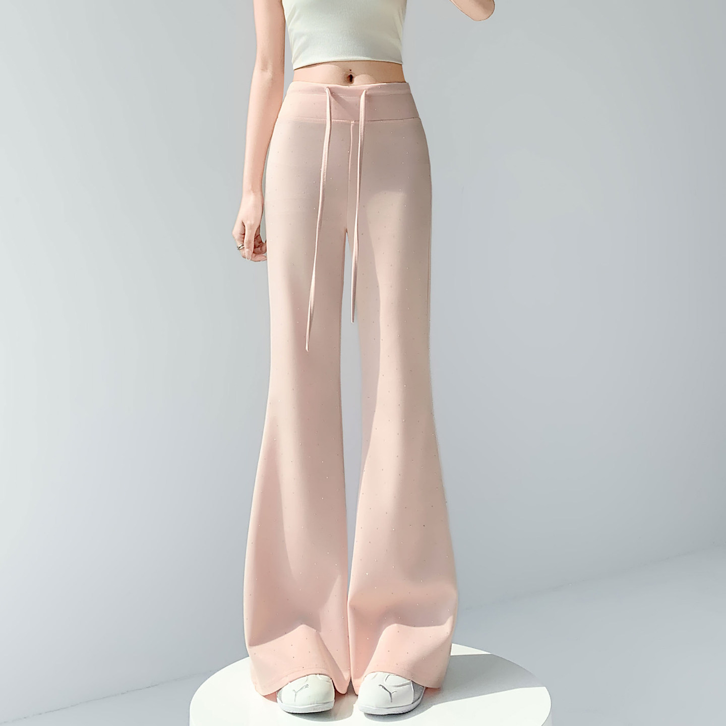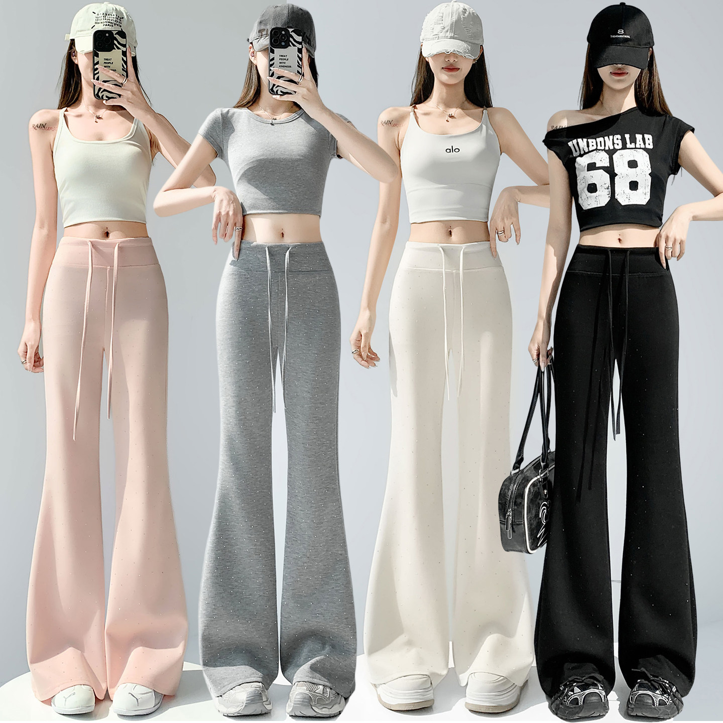 2026春夏薄款米白色烫钻微喇裤女式冰丝空气棉休闲裤高腰垂感显瘦